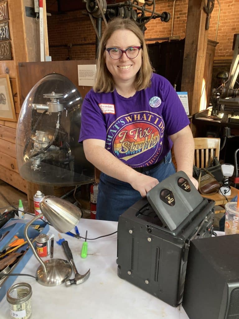Waltham resident Krys Petrie, who describes herself as a multidisciplinary engineer, is the founder and organizer of the event, which brought more than 100 people and 18 volunteer repairers to the museum. She had volunteered previously at a repair cafe in Melrose and thought the concept would be particularly apt in Waltham, with its rich industrial history.