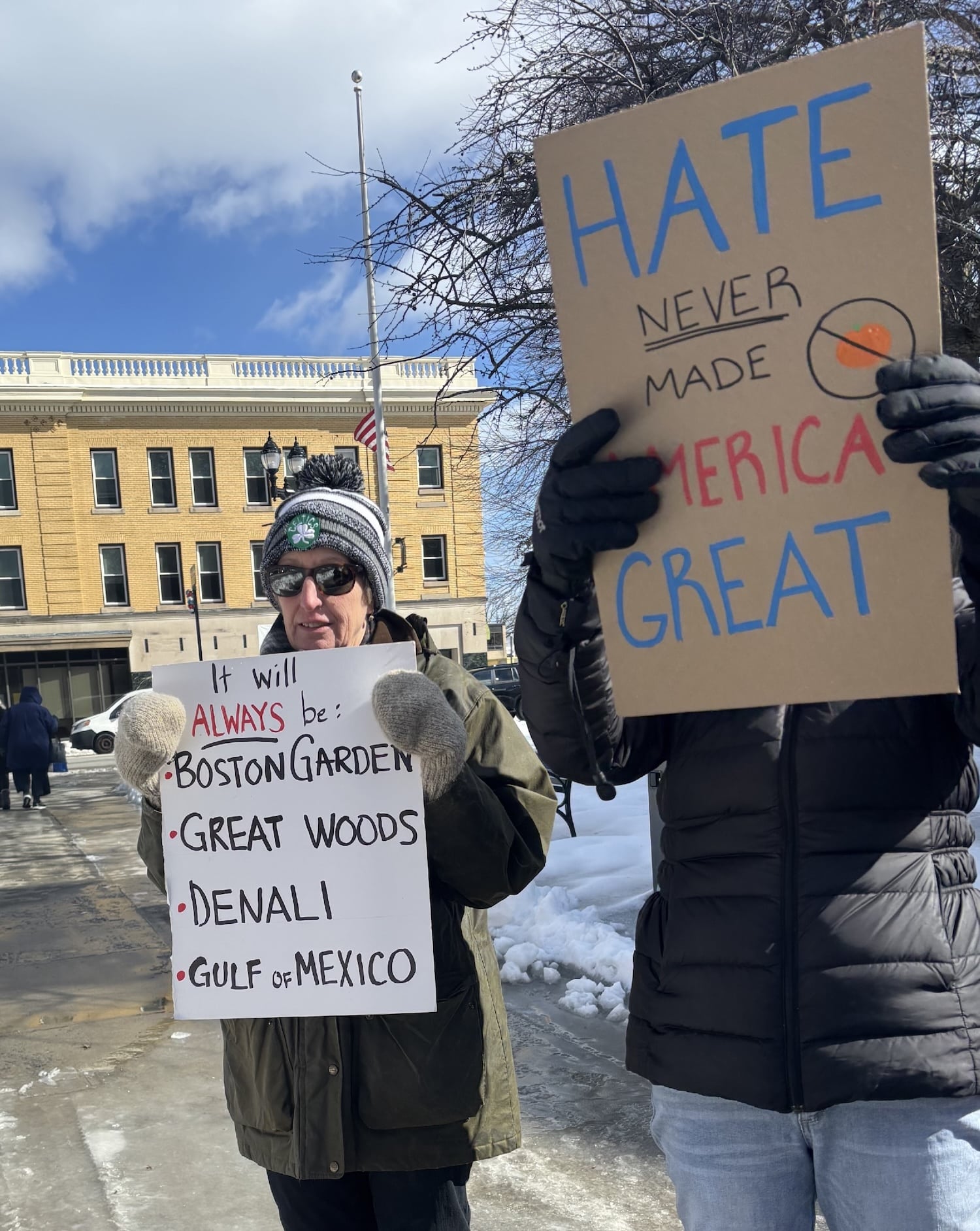 Waltham City Hall sees ‘Not my Presidents Day’ protest