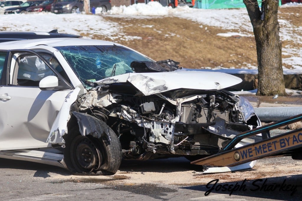 Waltham emergency crews responded to a report of a motor vehicle accident at the intersection of Beaver Street and Lexington Street around round 11:40 a.m. this morning.