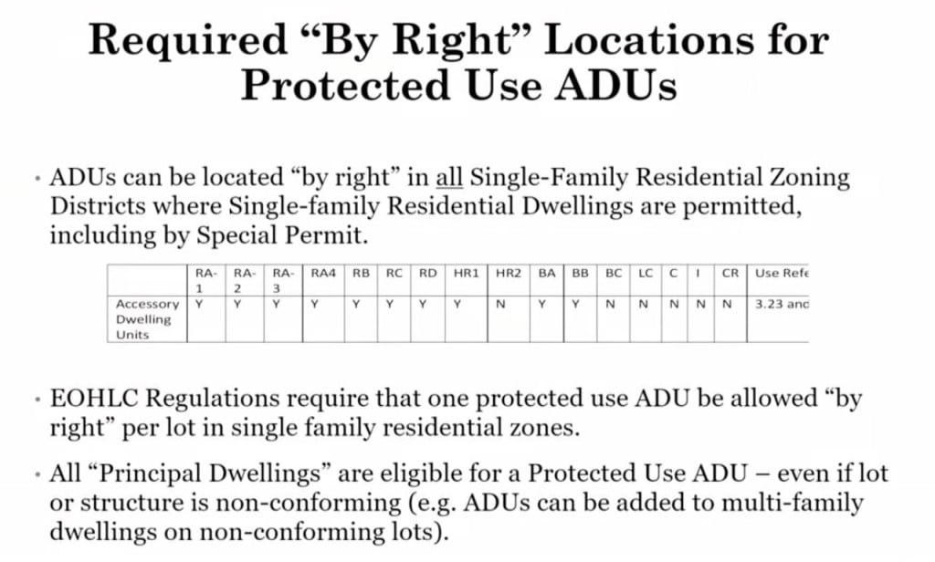 Waltham law currently allows residents to build ADUs only if they first go through an extensive process to get Zoning Board of Appeals (ZBA) approval. Under the proposed ordinance, homeowners would no longer need to obtain a special permit from the ZBA.