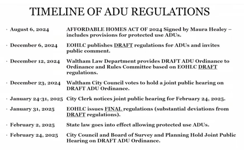 Waltham’s Law Department released a draft ADU ordinance on Dec. 12 based on the state’s draft regulations.