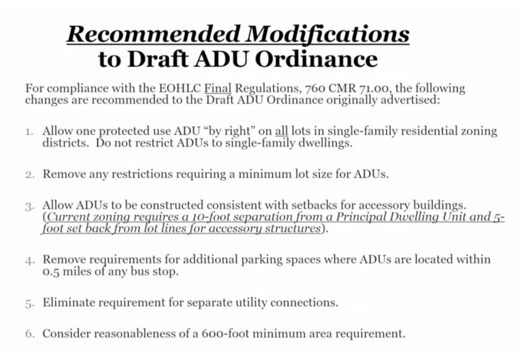 Waltham’s City Council must adopt a new ADU ordinance to comply with Massachusetts law.