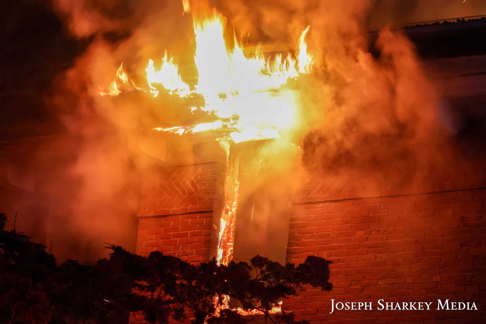 As the responders fought the fire, command reported a partial interior collapse. Multiple ladder pipes and master streams were placed into operation to try to gain control of the fire. Embers from the main fire also ignited a building across the street, requiring additional resources.