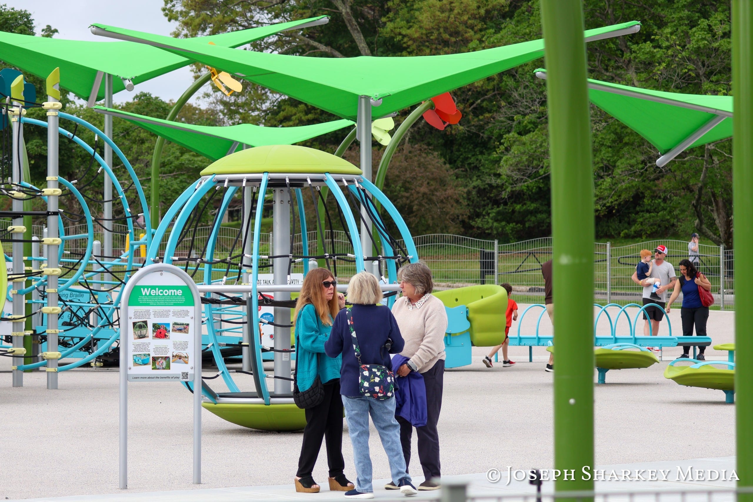 The event also marked the opening of the Universal area, which prominently features a playground for all ages and abilities, a seasonal spray park and a seasonal 18-hole mini golf course. The Eunice Kennedy Shriver Memorial Area features an open field space, walking path and adult fitness area. The Memorial Area includes signage encouraging visitors to “reminisce on activities at the property.”