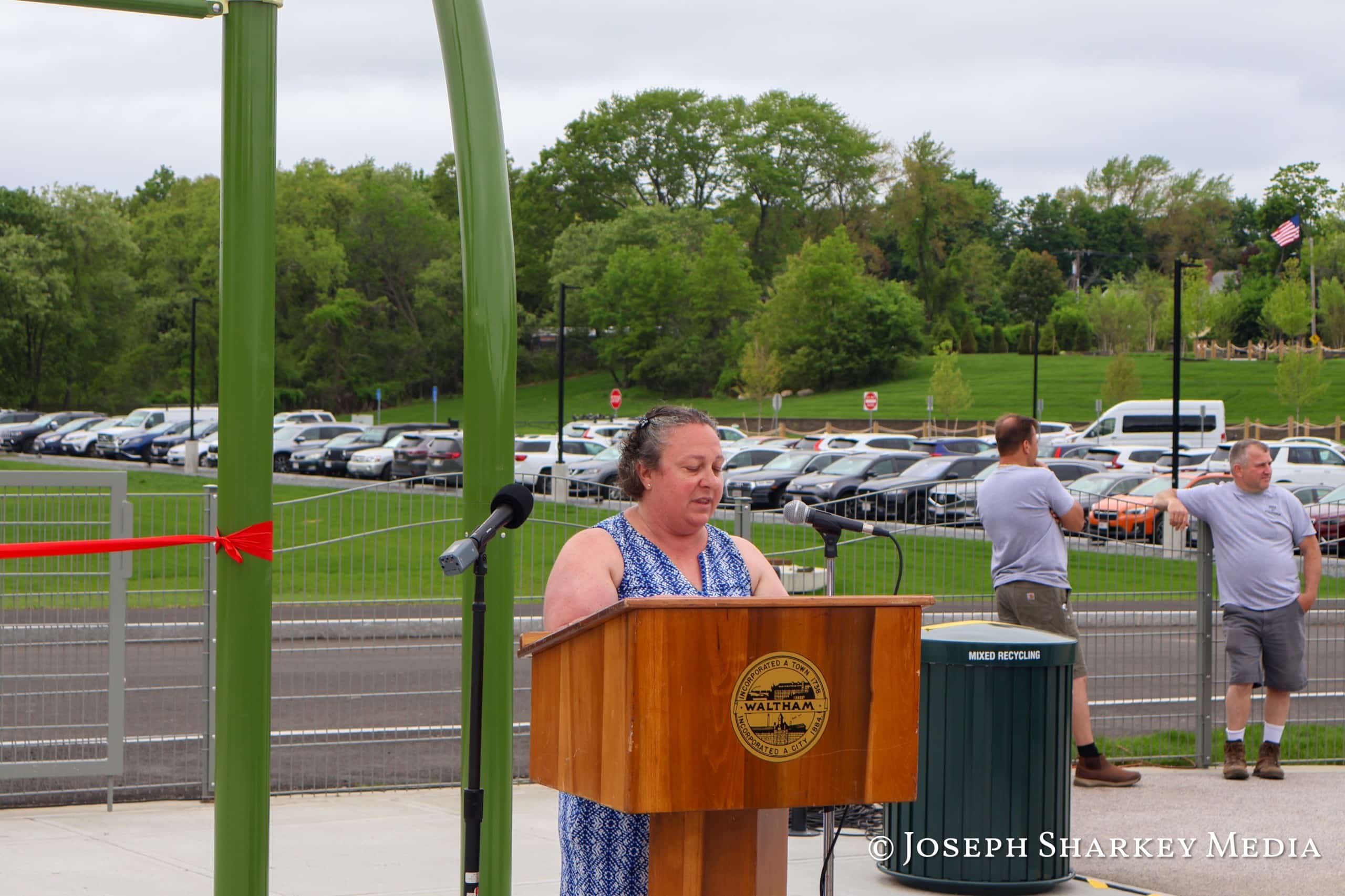 As children explored the new playspace, the city held a ribbon-cutting ceremony to celebrate the opening while honoring individuals with disabilities. Several former residents of the Walter E. Fernald Developmental Center joined Waltham Mayor Jeannette A. McCarthy, members of the City Council and city officials for the opening.