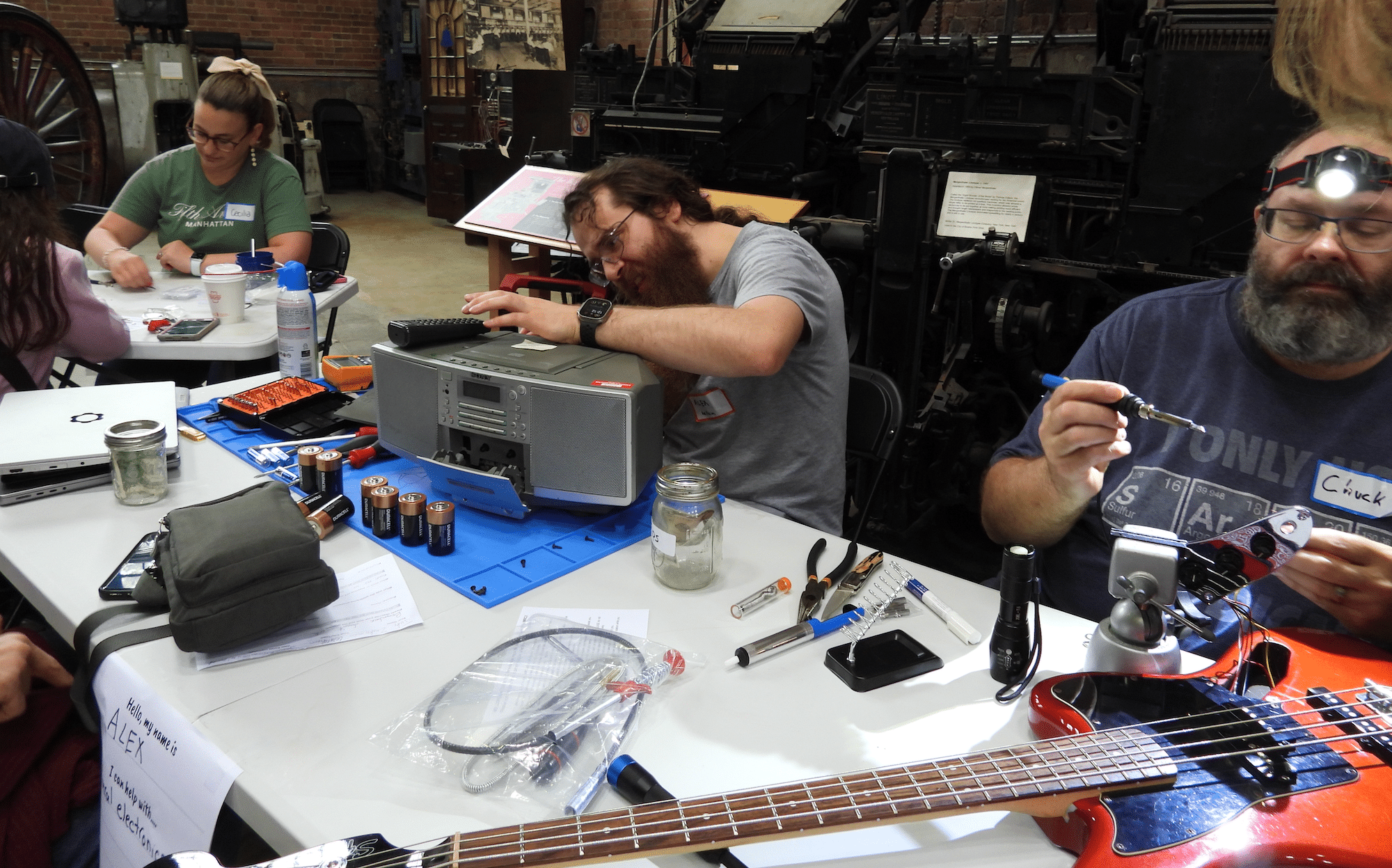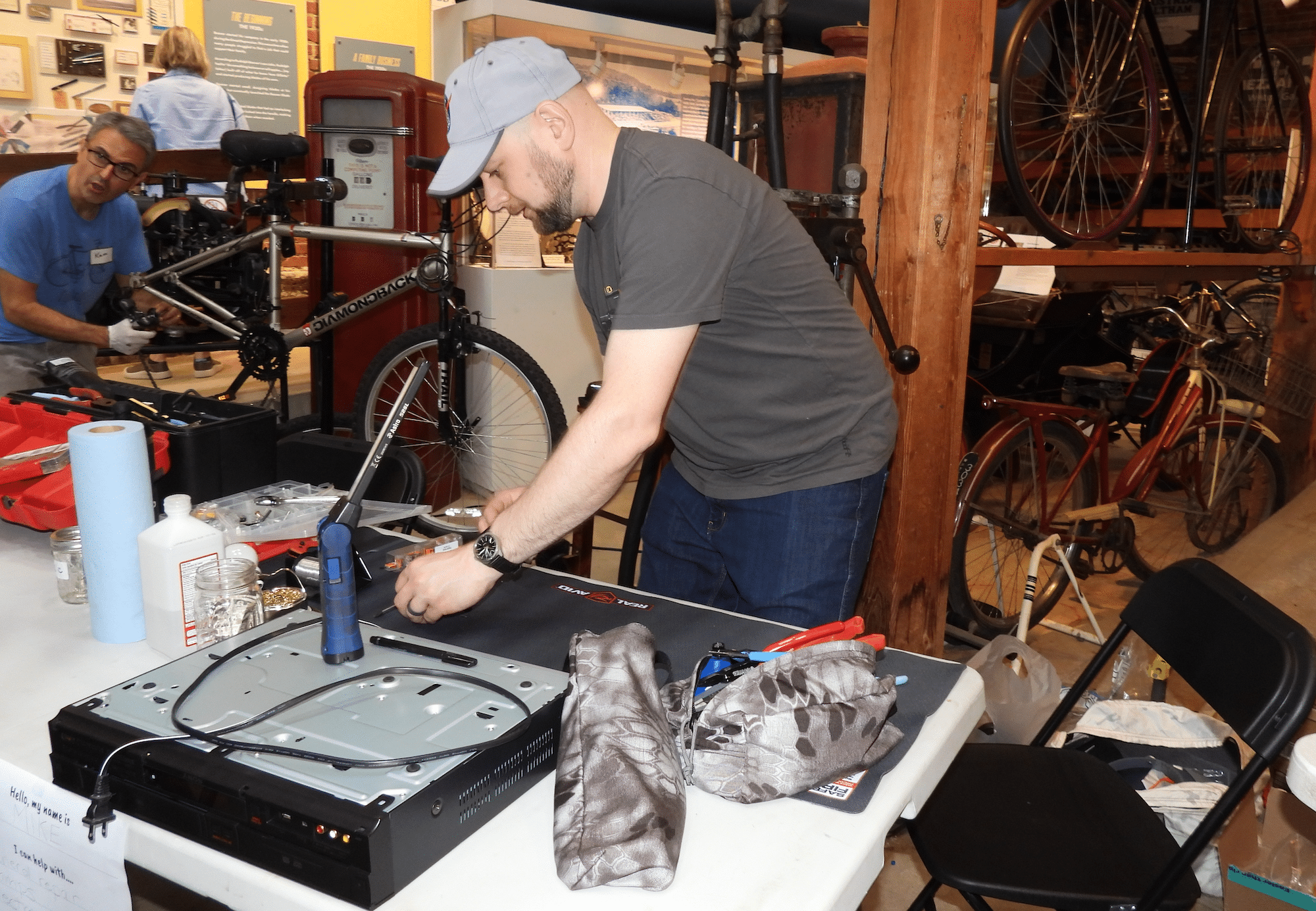 The Charles River Museum of Industry & Innovation hosted a Repair Cafe on Saturday. This has become a popular regular event, drawing residents who need help fixing broken appliances and a host of other possession in need of some TLC.