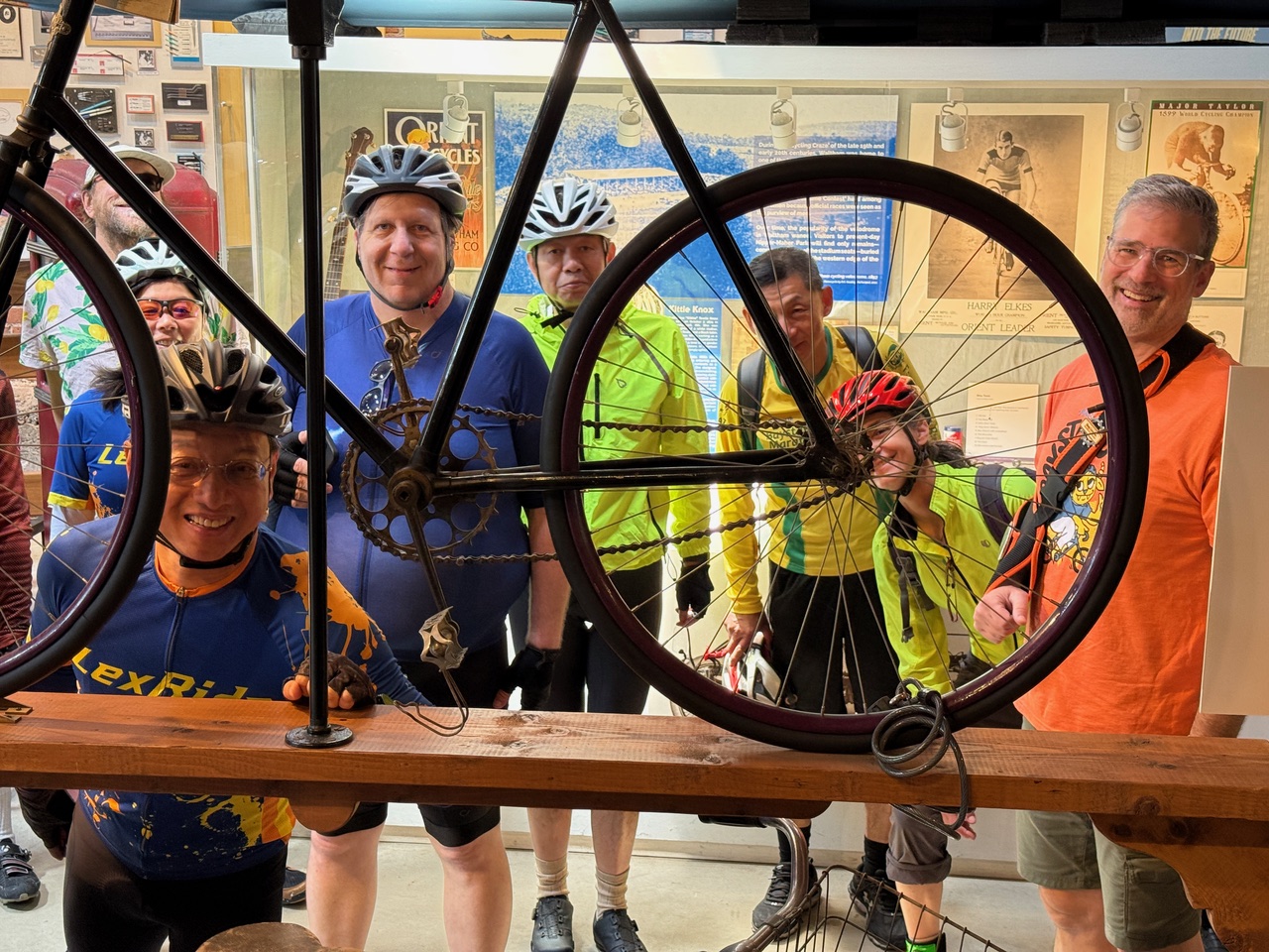 Many of the riders were excited to see the museum’s collection of late-19th and early-20th century bicycling items, including bikes, tools and photos. The Charles River Museum is one of the only museums with a representation of Knox on permanent display.