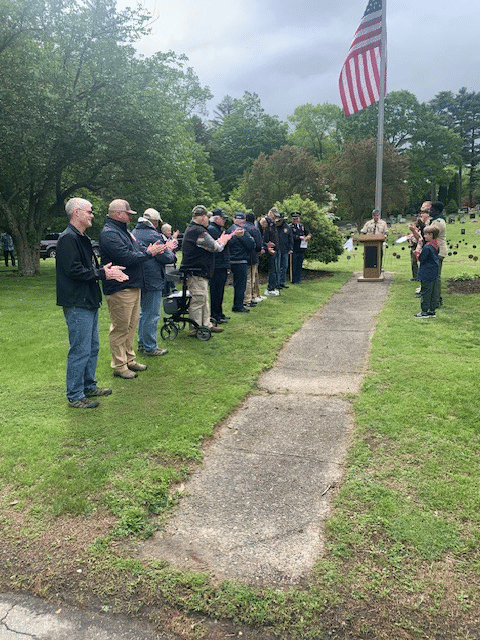 The morning event started with a brief service featuring a few speakers and a reading of the names of Waltham veterans who had died during the past year. Those present then planted U.S. flags at the graves of veterans buried at the cemetery.