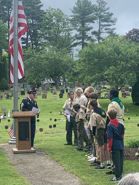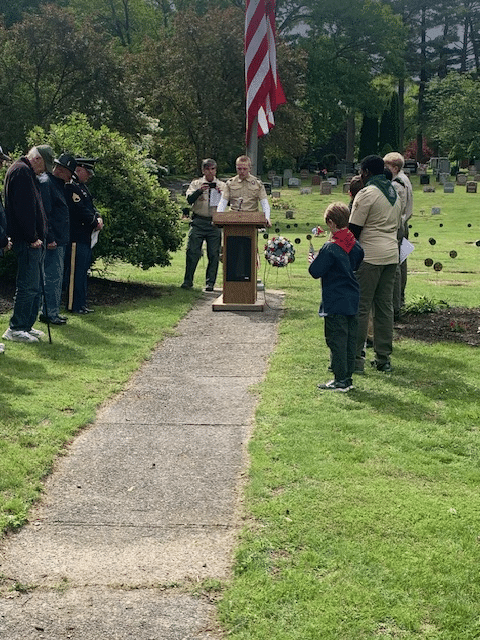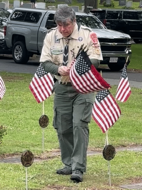 Scouts from Troop 248 and Troop 250 joined veterans and city officials at Mount Feake Cemetery on Saturday for the annual Memorial Day Flagging Ceremony.