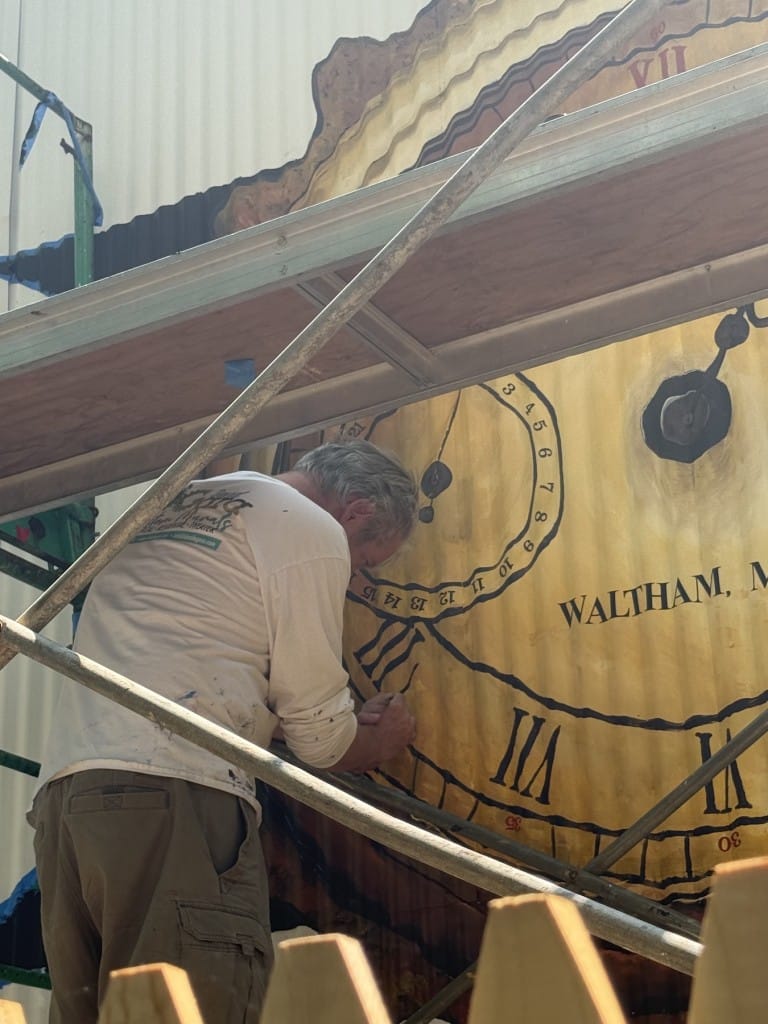 A new mural celebrating Waltham’s industrial and cultural history is taking shape along the city’s rail trail.