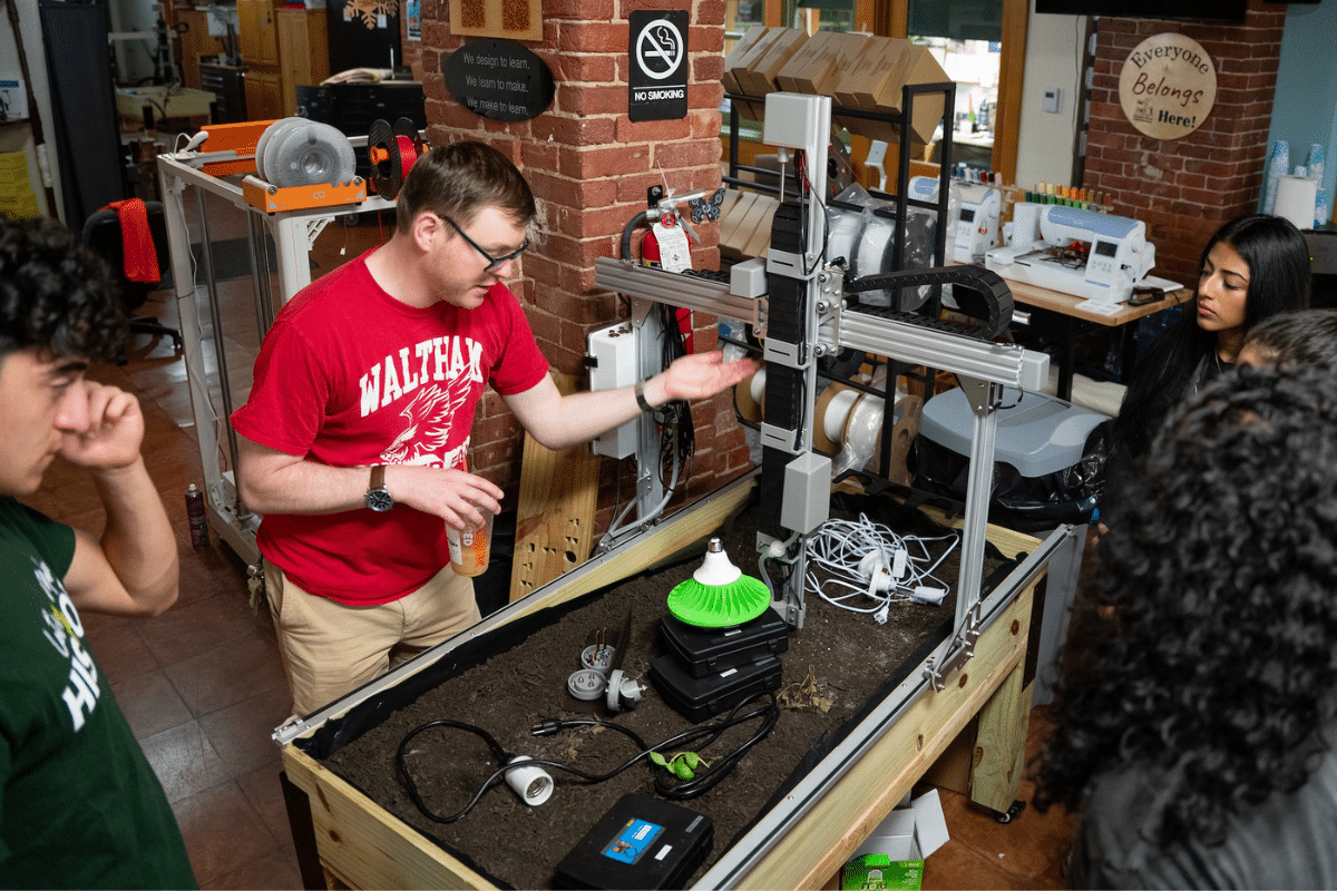 The Collaboratory was established in 2022 by the Boston College STEM team and the Charles River Museum, with support from Waltham public schools. Barnett described it as “a first of its kind space in Massachusetts” that is a youth-led learning space where young people use cutting-edge technologies to learn how to design and make objects for themselves, their families and the community.