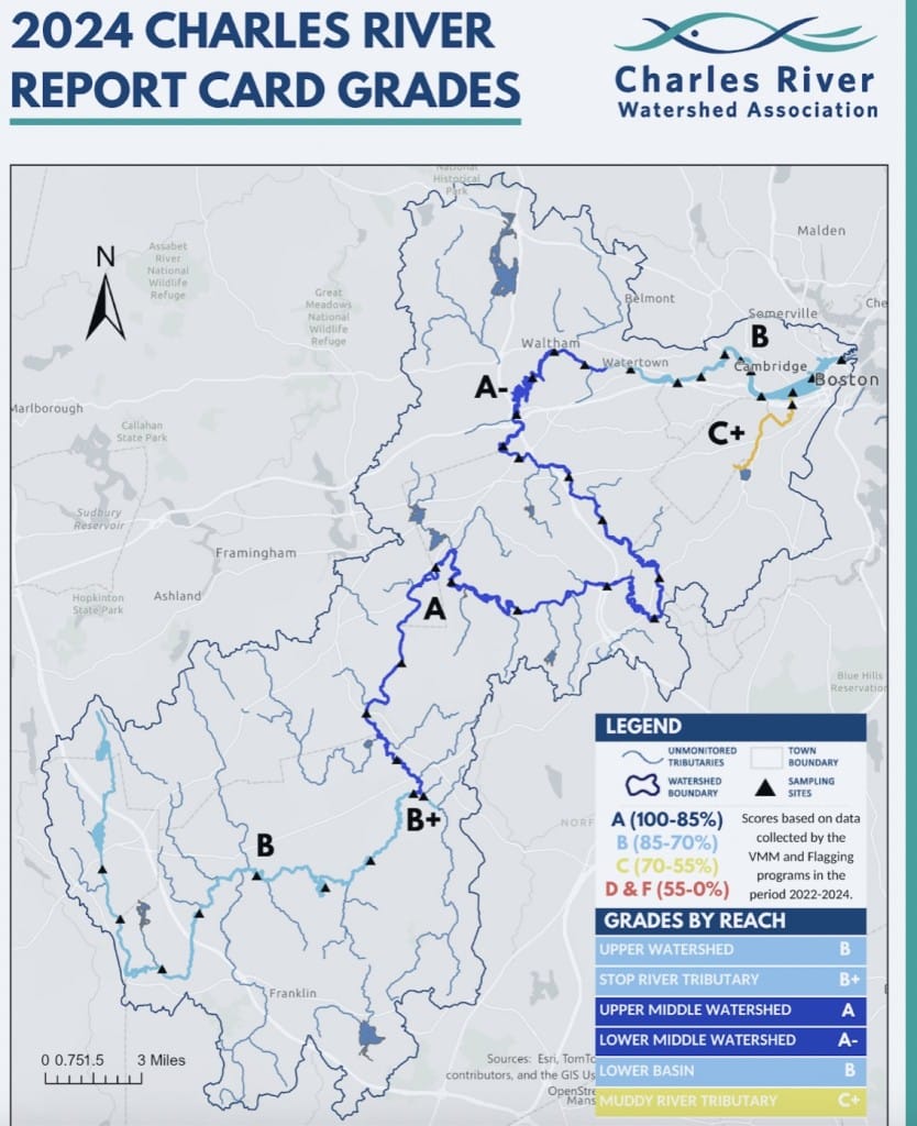 The 2024 Charles River Report Card gave the portion of the watershed located in Waltham an A-, with the overall river receiving a B-.