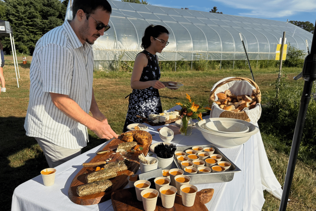 Waltham Fields Community Farm hosted its annual “Supper on the Farm” fundraiser on Monday. Supporters of the farm converged from far and wide to share a meal of succulent vegetables harvested on the Beaver Street farm and from its partner farms. Waltham resident, Chef Dan Lane of The Tack Room in Lincoln, prepared the extensive menu.