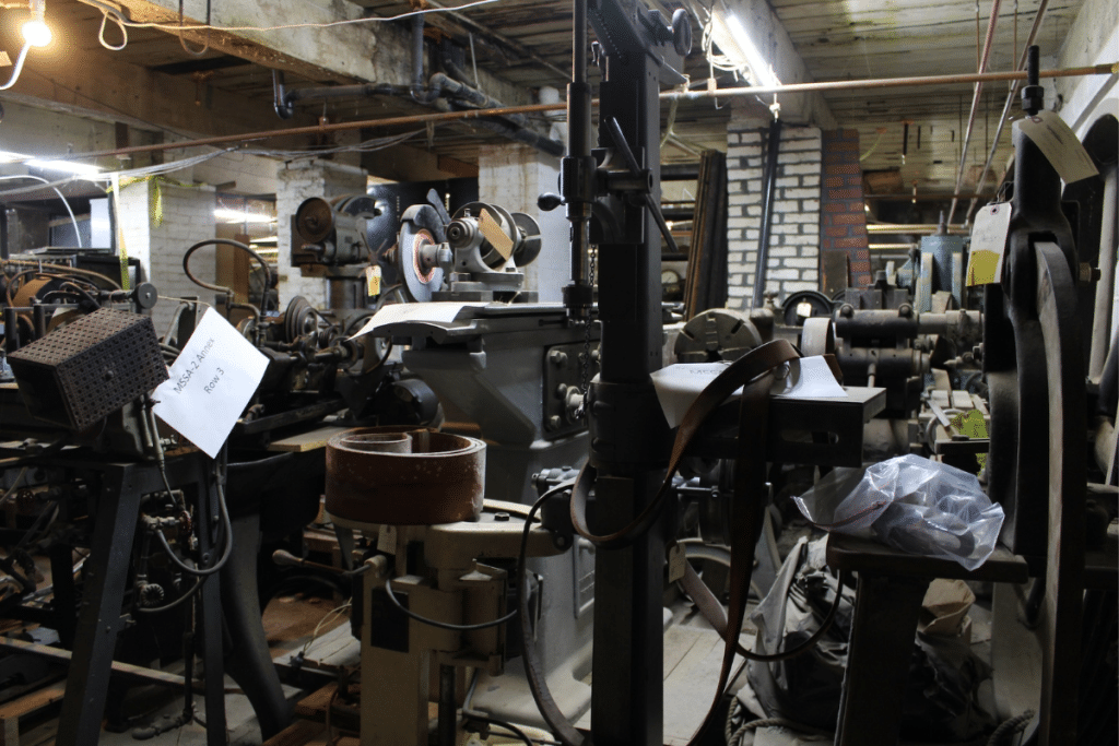 The Men’s Shed will, in turn, benefit the museum. Items in storage workshopped by club members may be added to museum exhibits. A factory machine from Polaroid, Ediphones, glass lathes from the Raytheon plant, belt splitters and Trident missile system testing equipment are just some of the pieces waiting to be restored.