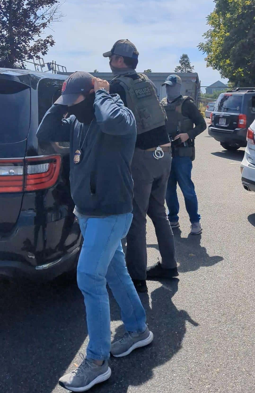 Unidentified agents conduct arrest near Waltham District Courthouse
