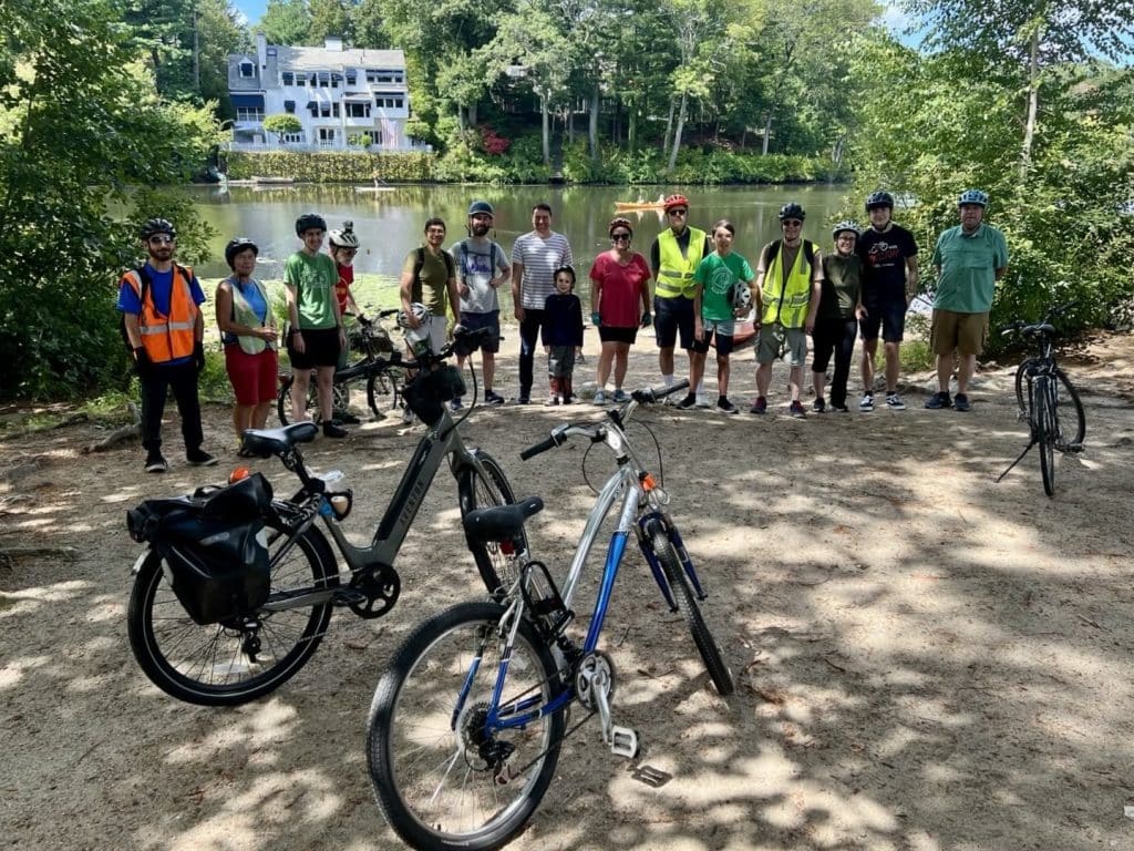Bike Together Waltham organizes monthly group rides on the last Saturday of each month. The group advocates for safer city streets for all road users.