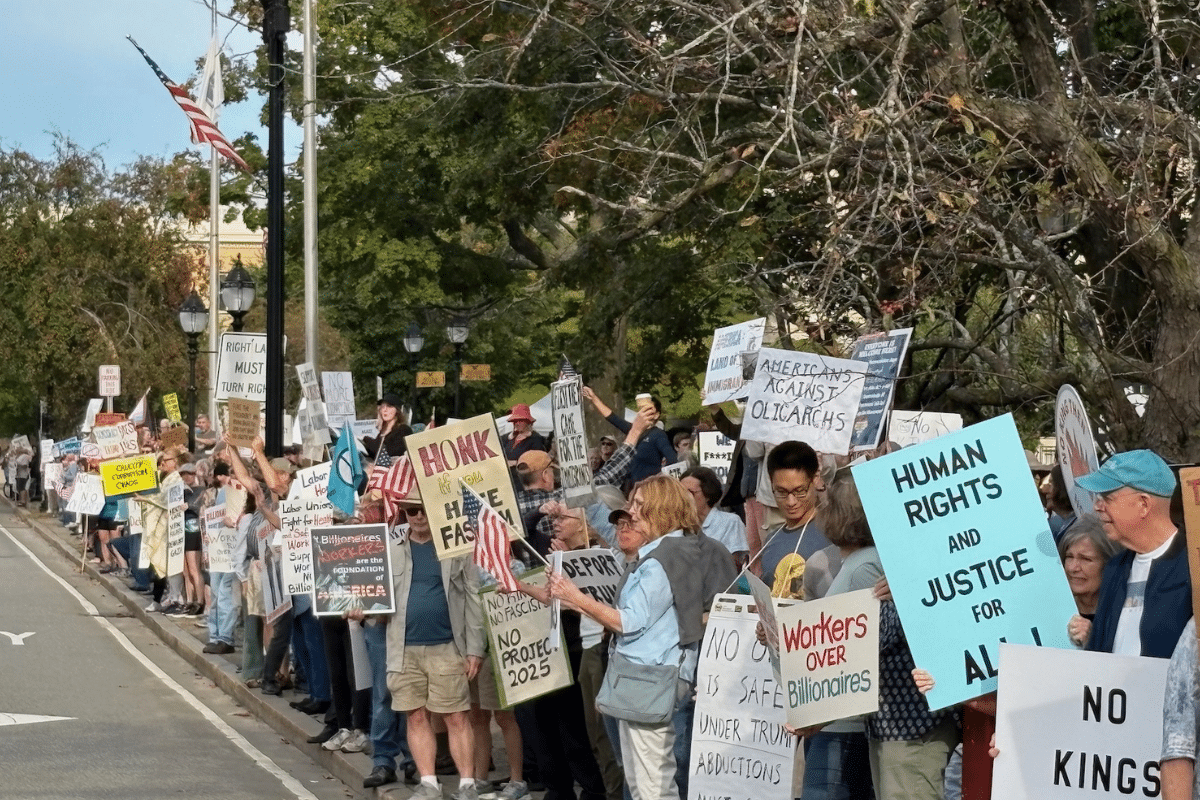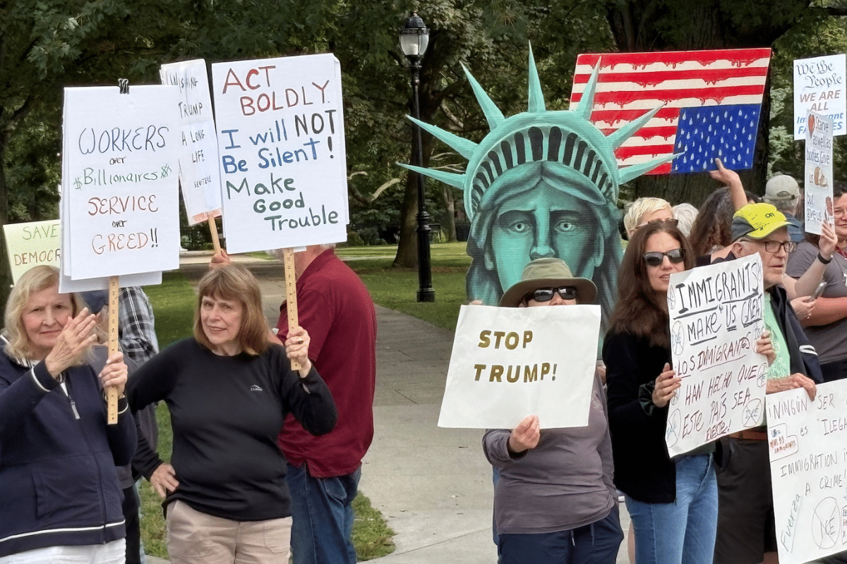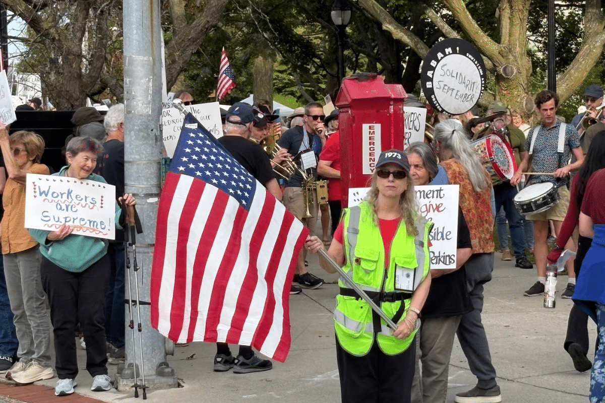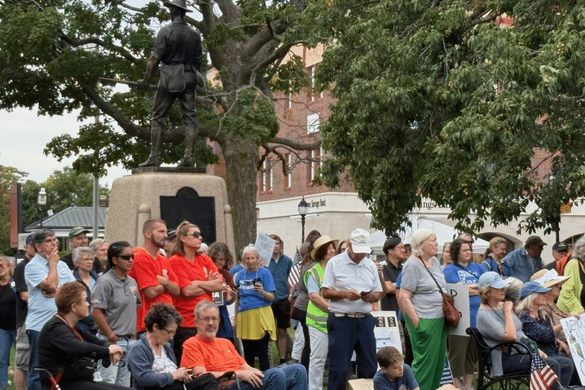 Protest draws hundreds to Waltham Common on Labor Day