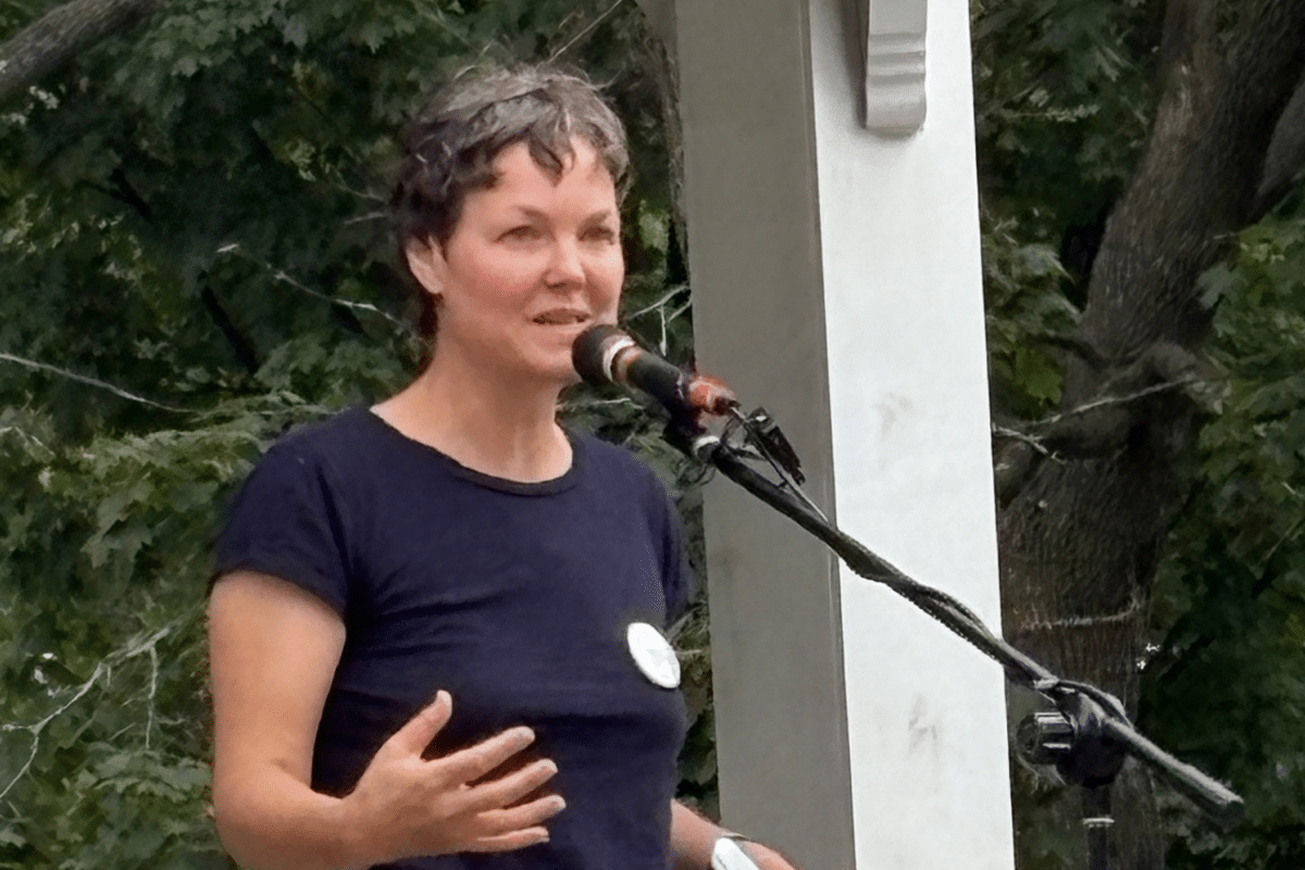 “We’re dealing with the government right now that’s run by people who don’t believe in democracy, who want to create an autocratic state controlled by a very small handful of unelected billionaires that puts the machinery of this country to work on their behalf – on the behalf of the further consolidation of their capital and power, and not on behalf of the common working people who elect them, who should be electing our government,” said Elizabeth Hoffecker, a lead organizer for Indivisible.