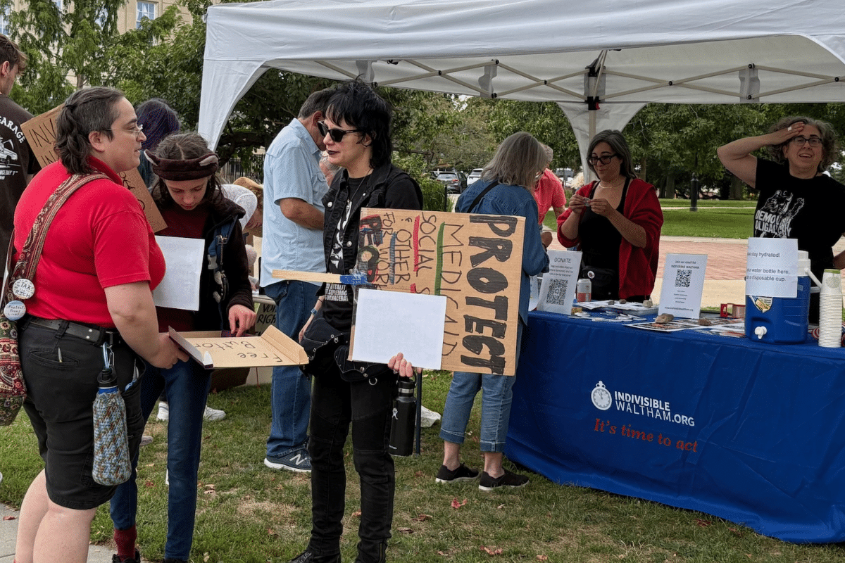 UPDATE (Sept. 4, 7:05 a.m.). The article has been updated to cite Indivisible Waltham as the rally organizer. Elizabeth Hoffecker was the lead organizer.
