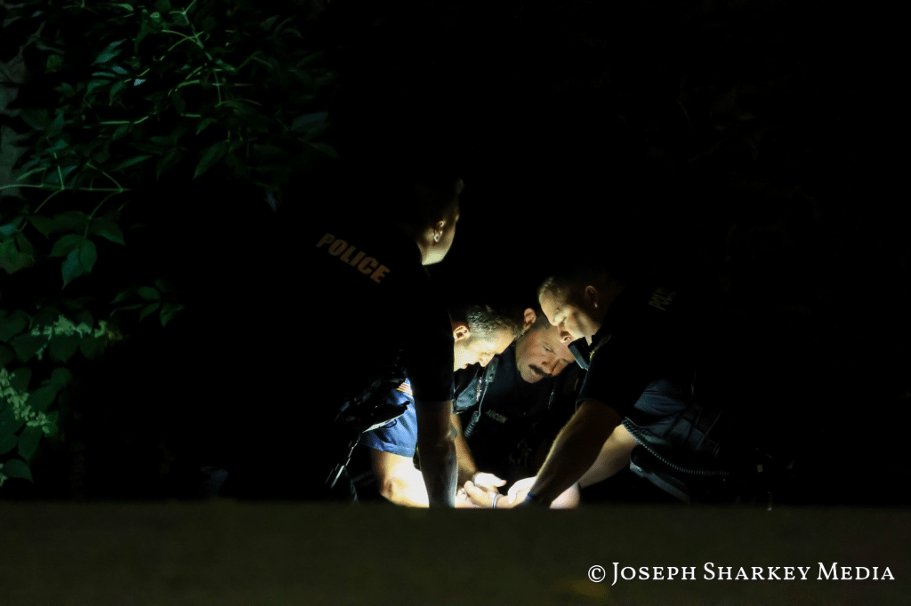 Upon arrival, officers observed multiple individuals fleeing the scene. Additional units were dispatched including K9 officers. Police quickly secured the area and three individuals — including juveniles — were taken into custody.