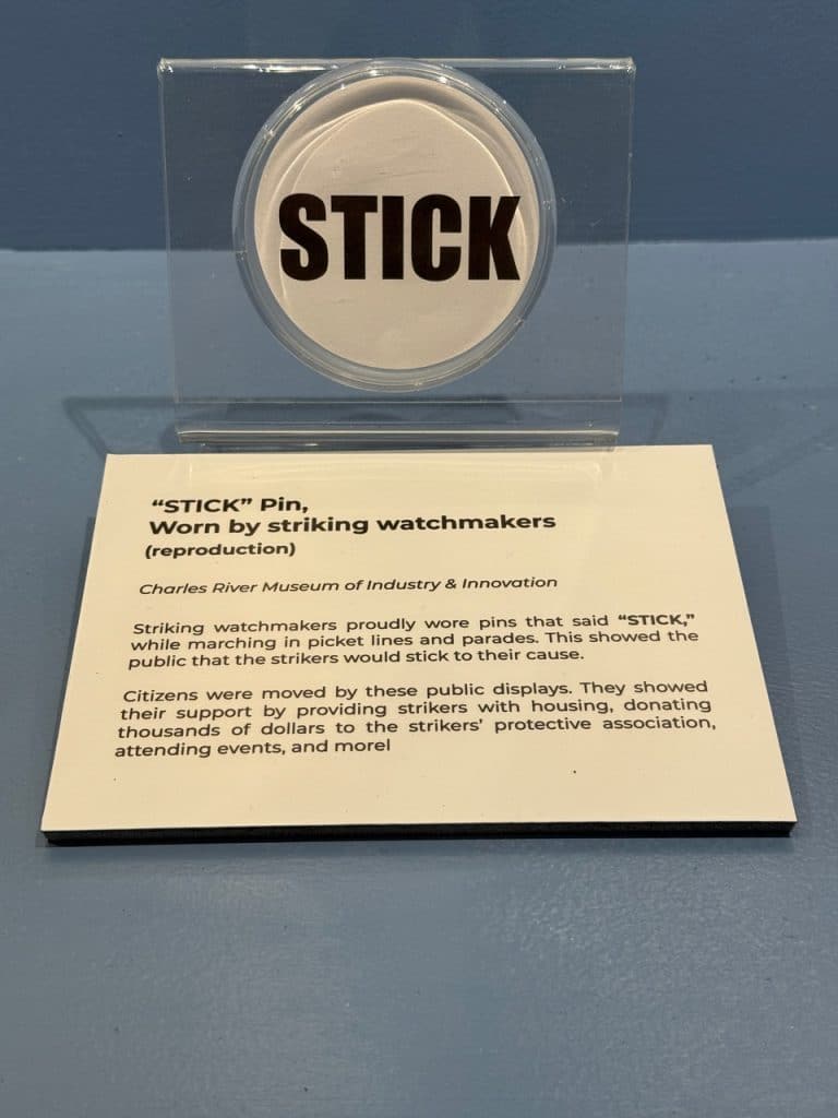 On Aug. 11, 1924, “workers at the Waltham Watch Factory left their benches in protest of unexpected wage cuts. Before long, 2,800 Waltham Watch Factory employees had joined to form a massive striking body,” according to exhibit text written by Colman. “They felt that their loyalty was being disregarded, and their way of life was being threatened.”