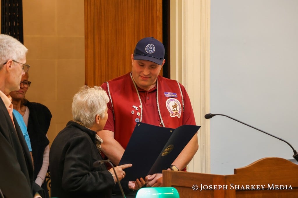 Ward 8 Councilor Cathyann Harris reintroduced the Kevin M. Ritcey Award for Outstanding Public Service Resolution, naming longtime Waltham High School teacher Jack Cox as a 2024 co-recipient.