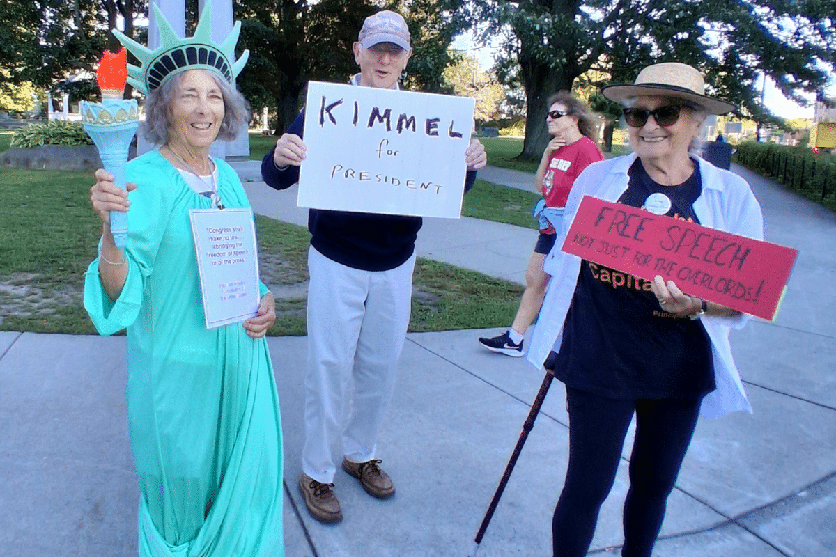Indivisible Waltham called on residents last Friday to stand up for free speech after ABC suspended comedian Jimmy Kimmel indefinitely.
