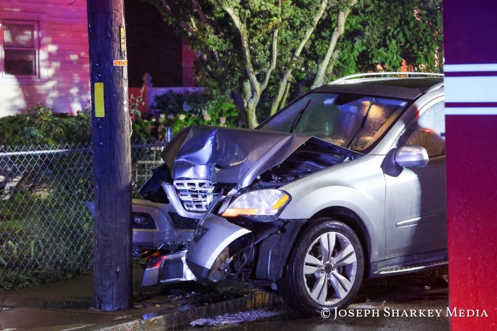 Emergency crews responded to the area of Amherst Avenue and Lake Street around 9:40 p.m. Wednesday after a car collided with a utility pole.