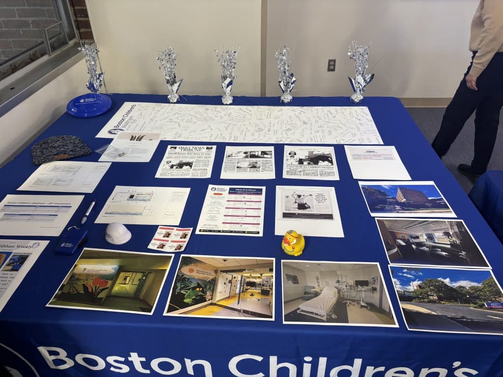 At the culmination of the event, attendees were invited to sign scrolls that will be laminated and placed inside a new time capsule encased in the renovated façade. Teri Hedgpeth, the hospital’s archivist, presented the contents of the new capsule to the crowd. These included pictures and newspaper articles from 2005 when Boston Children’s took over the site from Waltham Hospital, a hearing aid to represent the hospital’s robust audiology department and a variety of hospital merchandise such as a rubber duckie, a frisbee and a beanie. Once put in place in the newly renovated façade, the time capsule will not be opened until 2075.