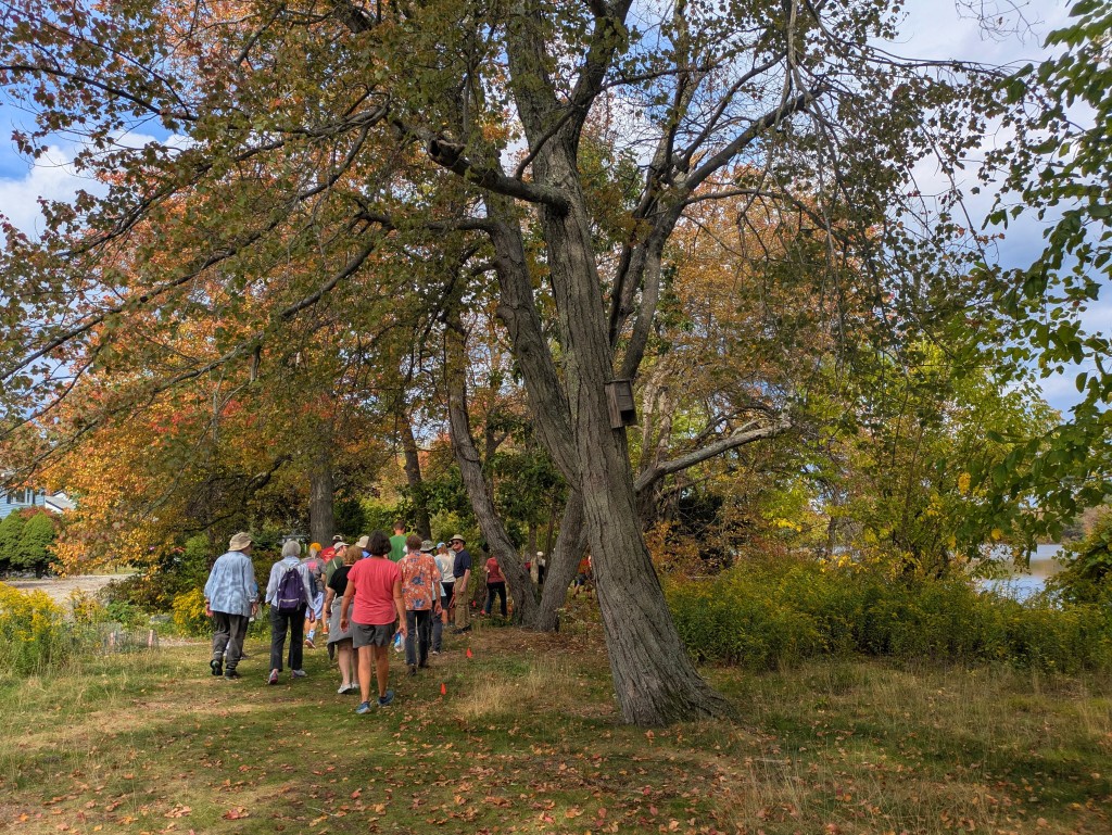 Cathy Mullooly, WLT Hardy Pond Coordinating Committee member and WLT Steward, led the Pondside Walkway tour. Along the way, she pointed out areas of interest, provided relevant history and answered questions. One theme that emerged at both the walk and the following celebration was planning for Hardy Pond’s future.