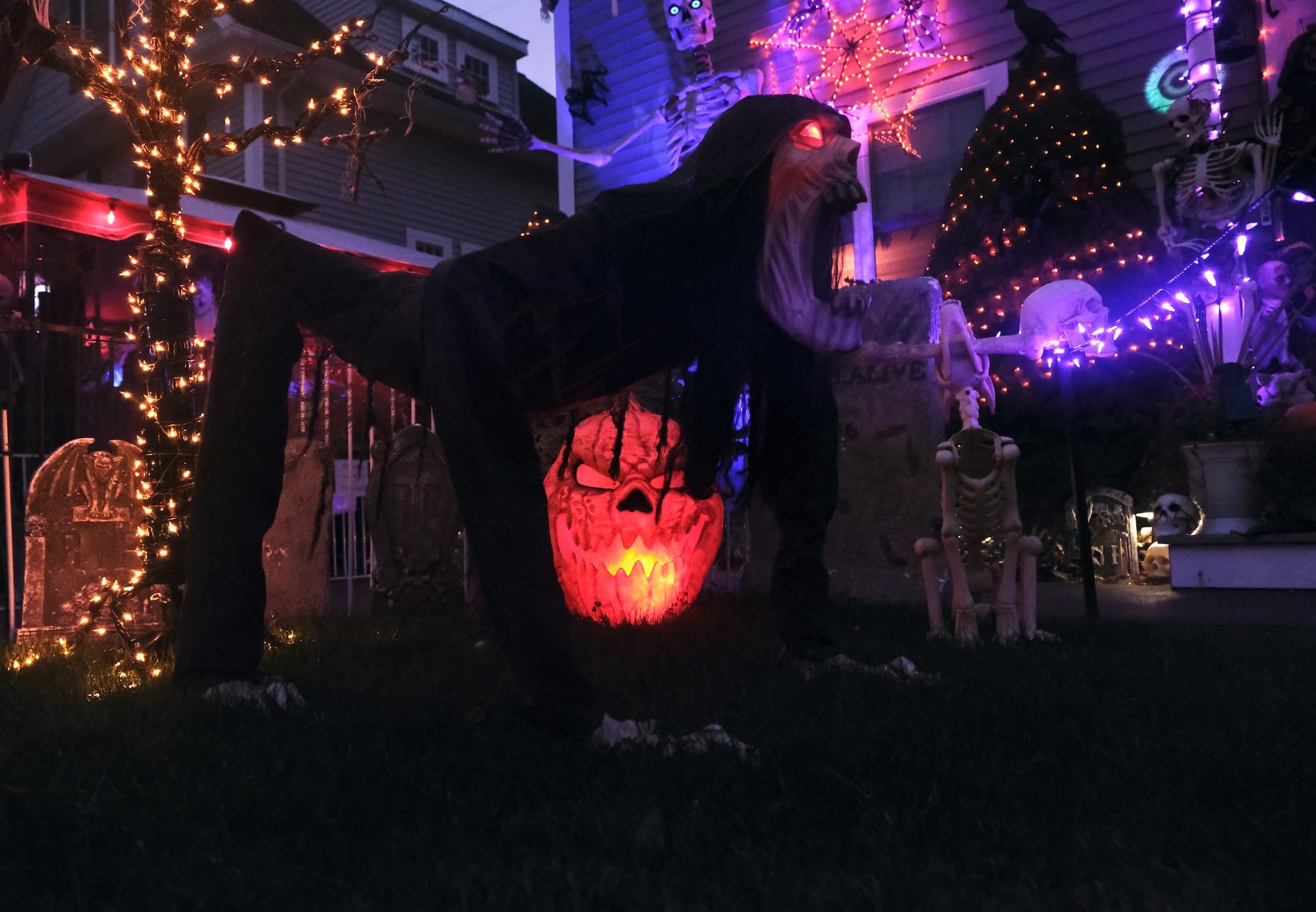 “People are more than welcome to walk through the yard, take pictures and have fun with the kids,” said Billy Gridley, who constantly checks all his animatronic witches, creatures and monsters to be sure they’re hard at work scaring visitors. “It’s so much fun to get that interaction and see the excitement of people. It makes it all worthwhile.”