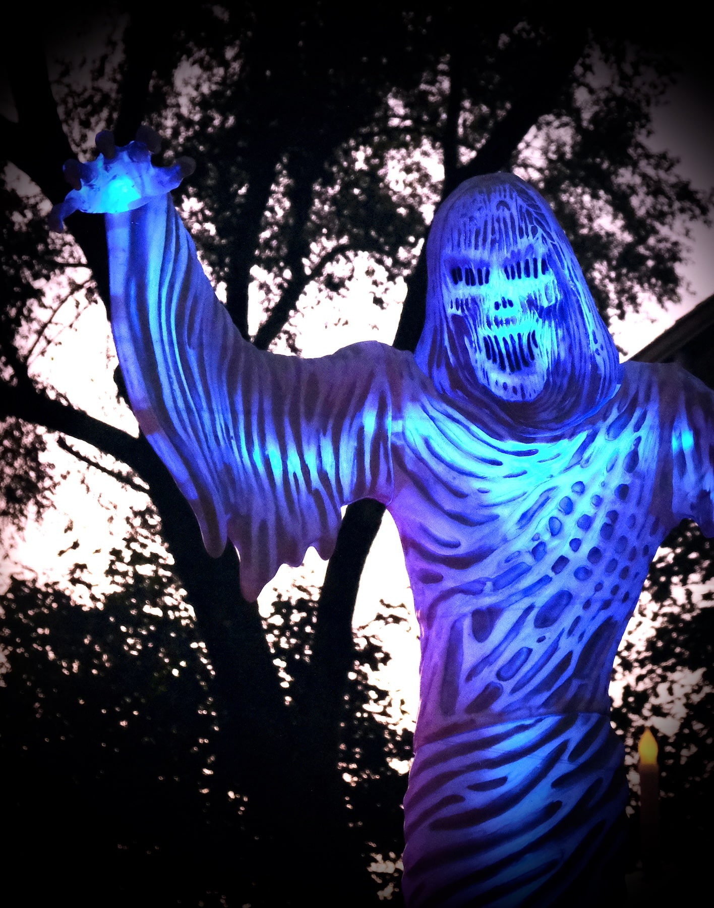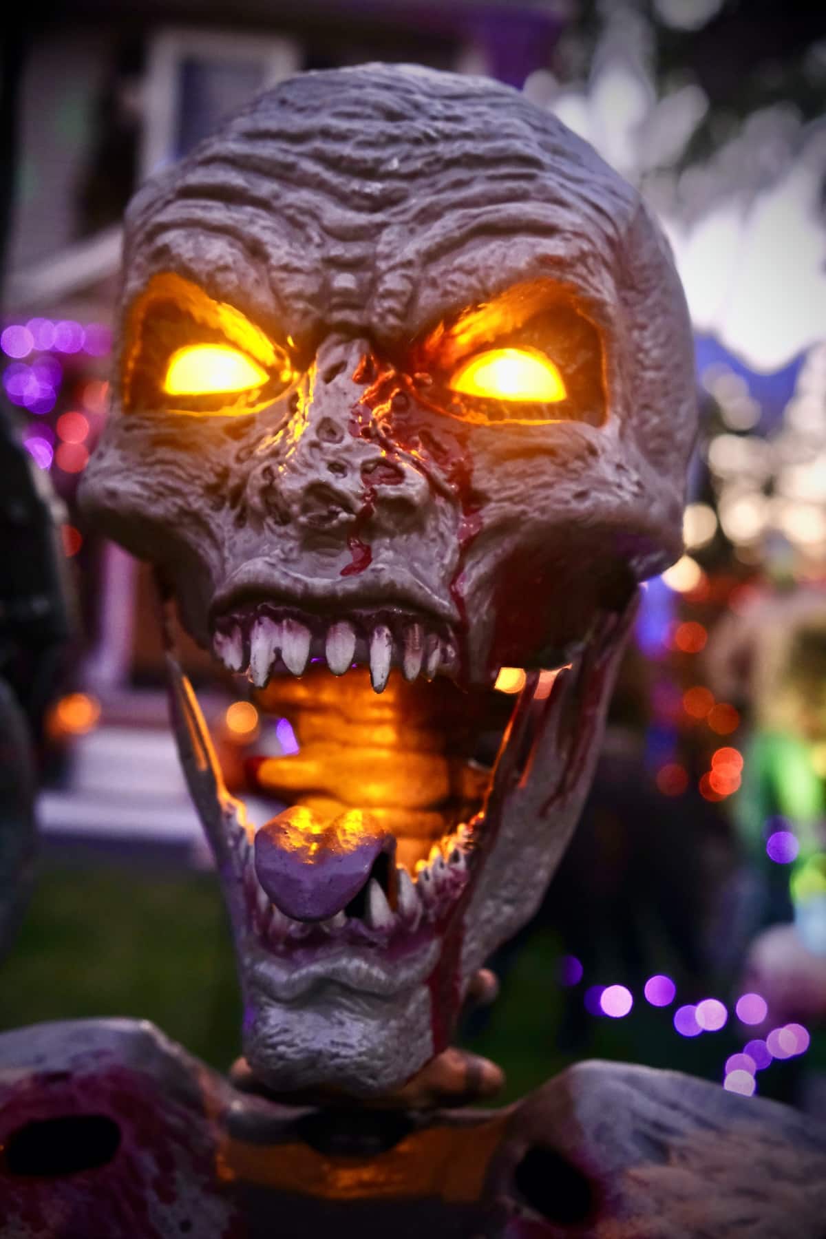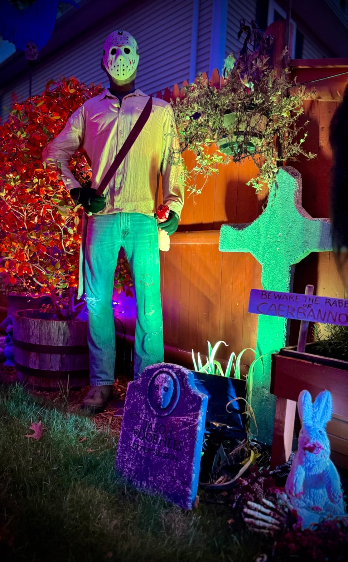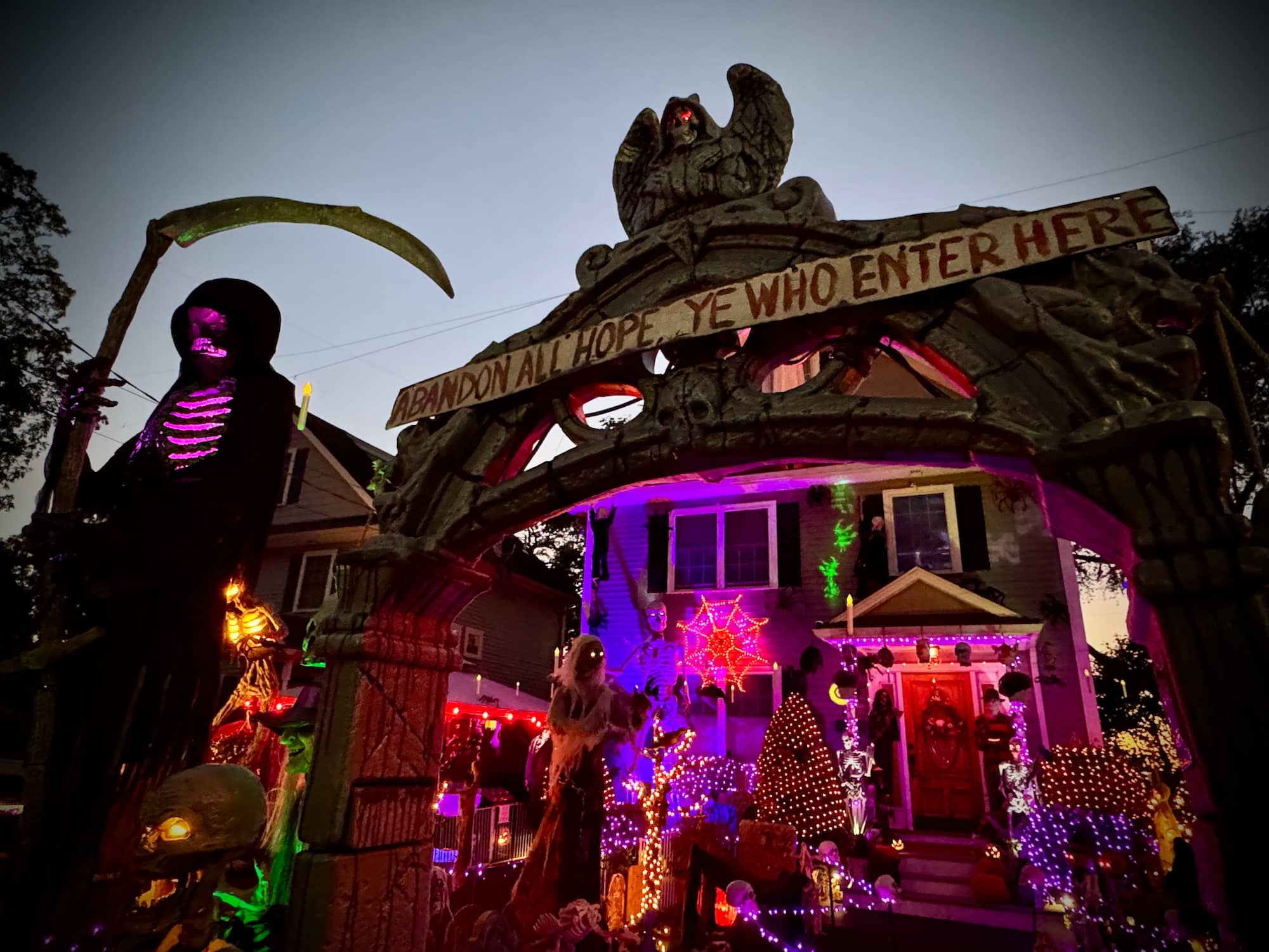 With the support of neighbors on both sides of their home, the yearly experience grew more elaborate, incorporating eye-catching lighting elements, spooky sounds and macabre surprises.