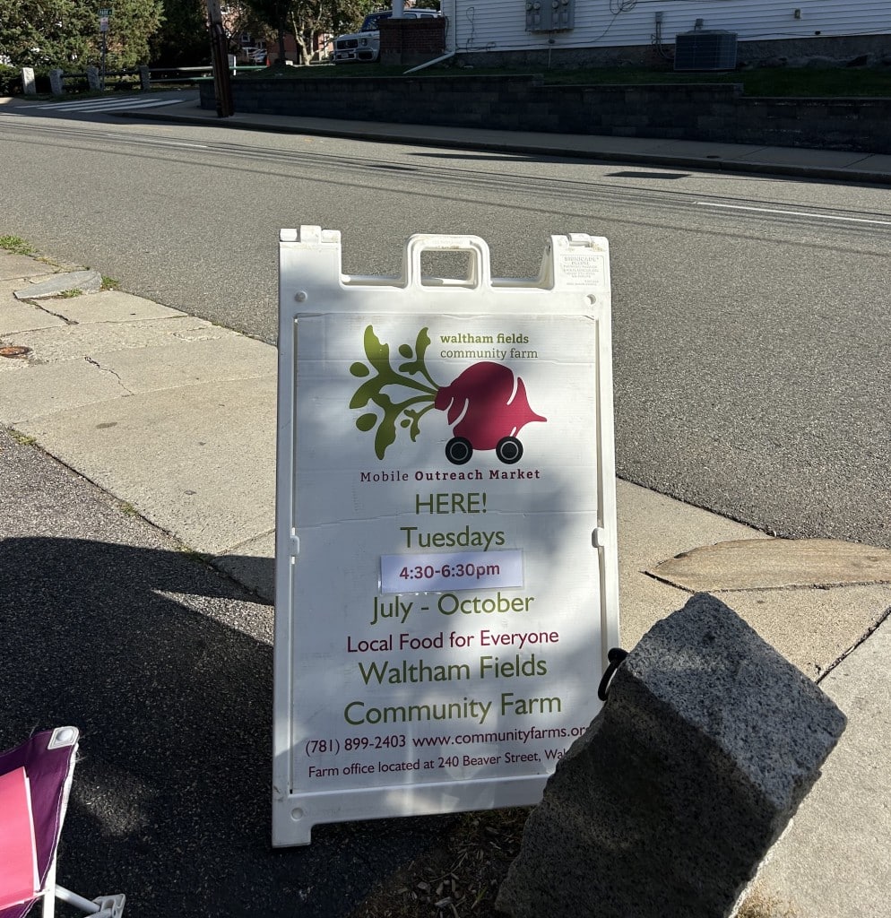 The Mobile Outreach Market serves Waltham residents from the parking lot at First Parish. Photo by Isabella Lapriore.