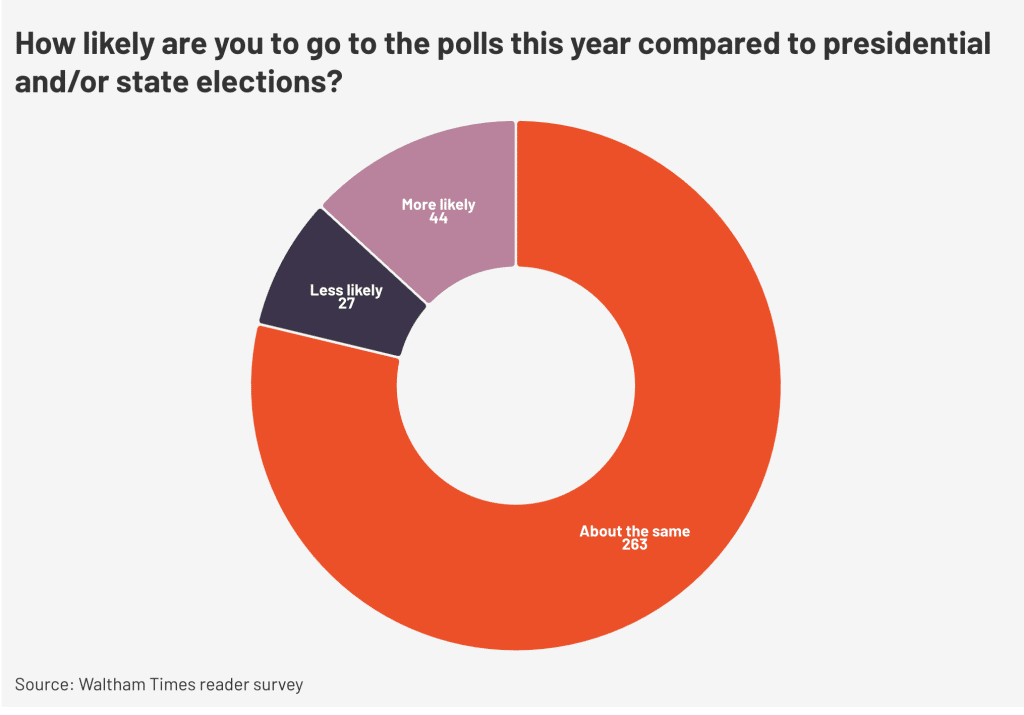 Our survey sample may therefore overrepresent Waltham residents who plan to vote in municipal elections, given that the overwhelming majority said they planned to vote this year.