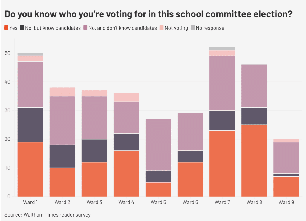 Although only around 40% of respondents knew who they were voting for for School Committee — and many more said they didn’t know who was running — most still said they would cast a vote, with only around 4% saying they did not plan to vote.