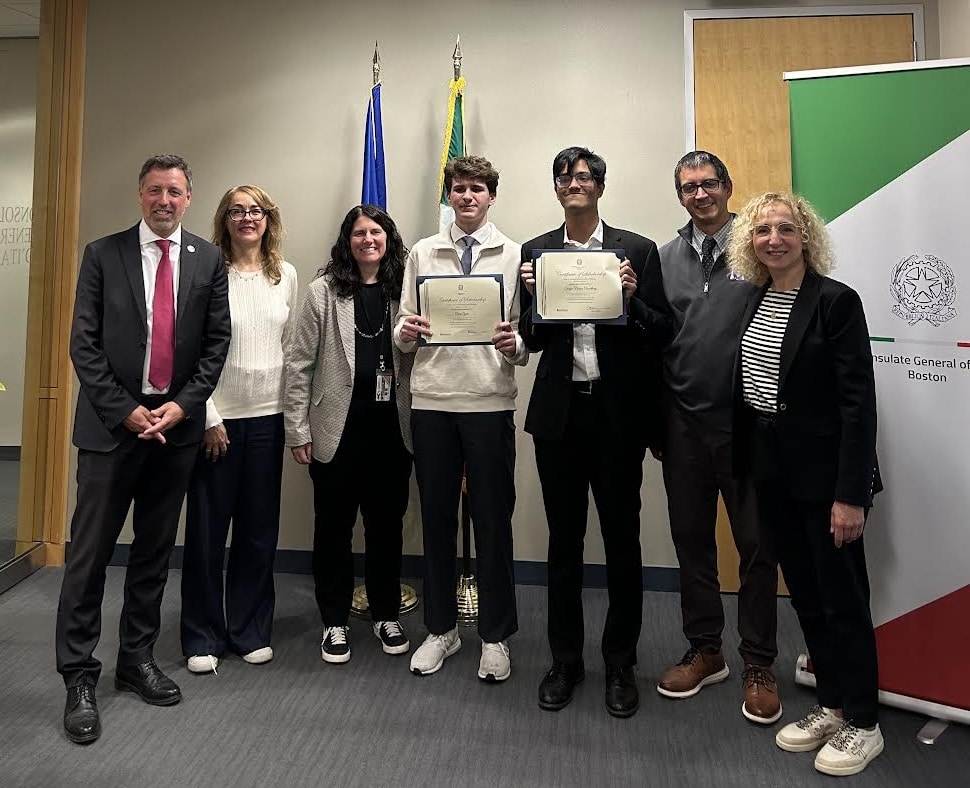 The ceremony, held at nine Italian consulates across the United States, with the Italian ambassador attending via Zoom, awarded scholarship grants to 19 Advanced Placement Italian students to study in Italy for up to five weeks next year.