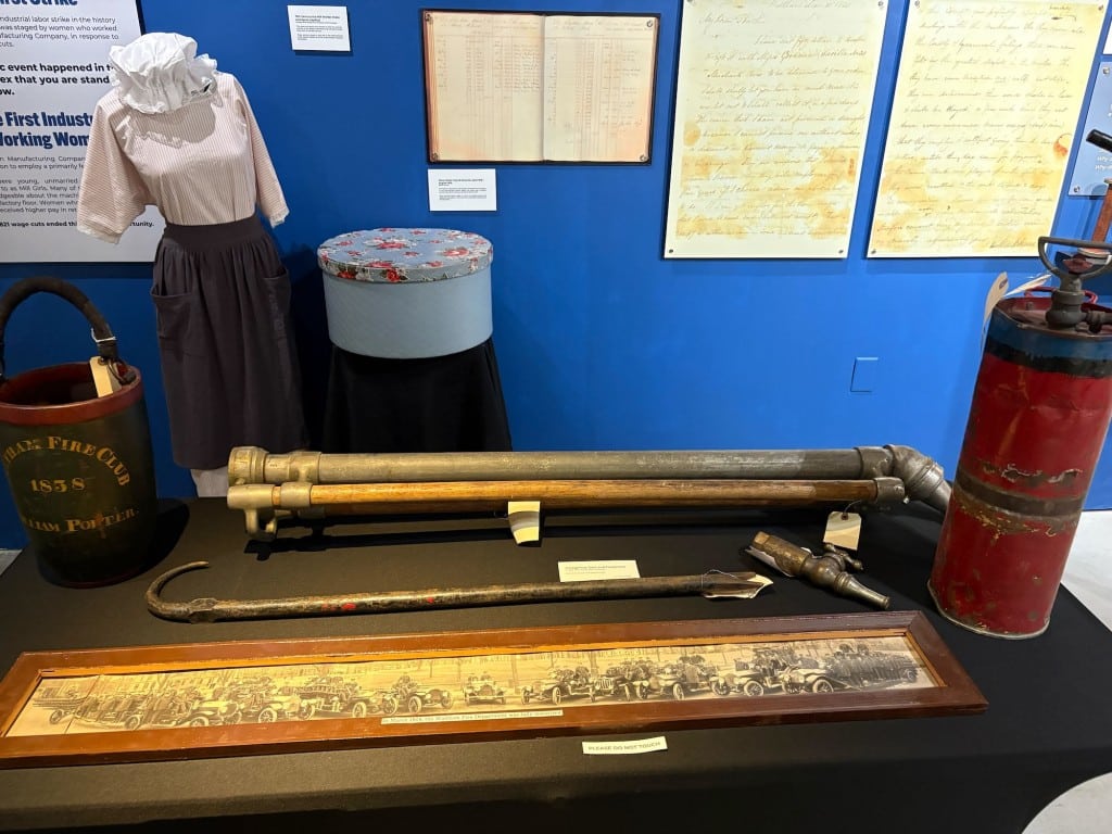 Gabriel Hurdle of Quinsigamond Community College played an instrumental role in helping the museum team identify, sort, and display its growing collection of firefighting artifacts. The collection features 19th and early 20th-century firefighting equipment, rare photographs and ephemera, much of which was donated by the Waltham Fire Department to the museum in 2018.