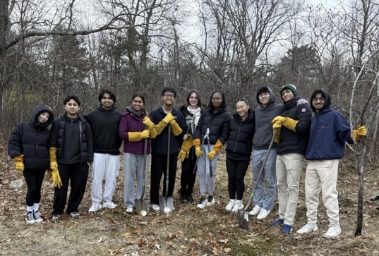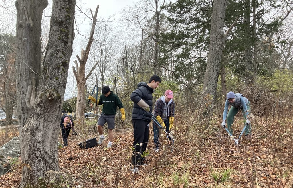 Bentley fraternity volunteers with the Waltham Land Trust to care for Wellington Fields
