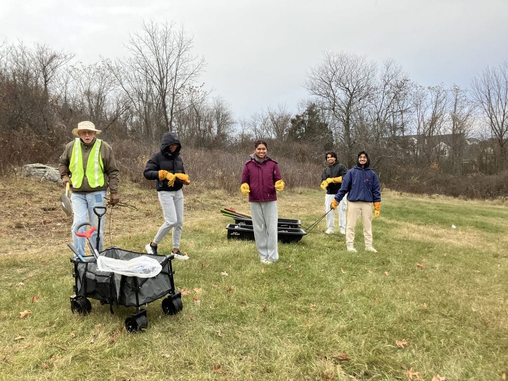 Bentley University’s Alpha Kappa Psi fraternity joined the Waltham Land Trust during one of the organization’s weekend volunteer sessions at Wellington Fields. AKP has been volunteering in collaboration with WLT and the Waltham Recreation Department for the last five years.