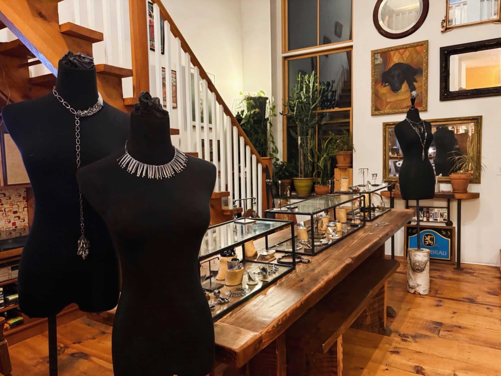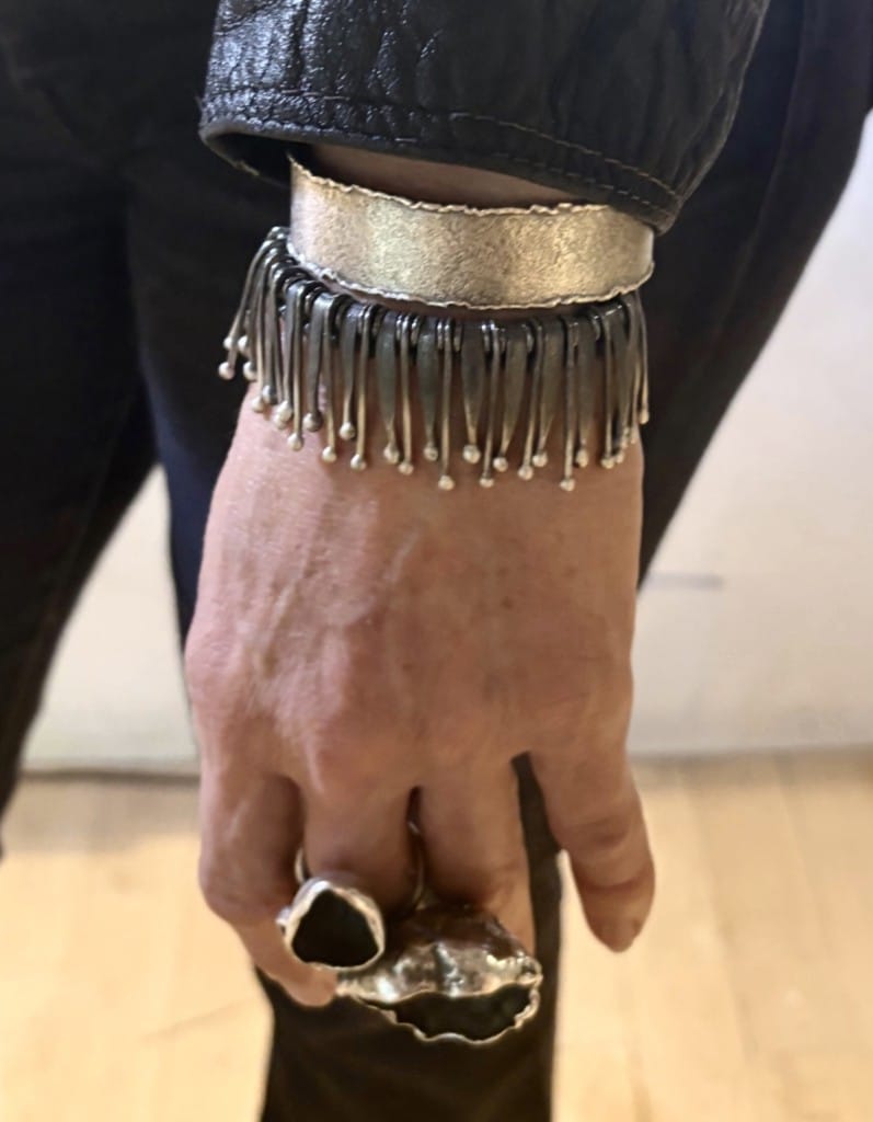 “I always had an interest in fashion,” she said. After working in retail corporate management for Urban Outfitters, at age 33 she decided to pursue her dream of making and selling her own creations. She soon enrolled at the Massachusetts College of Art and Design (MassArt) in Boston where she earned a BFA in metalsmithing and jewelry.