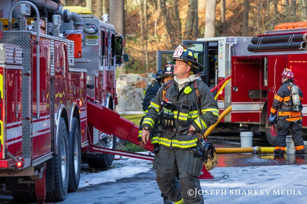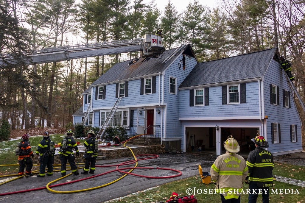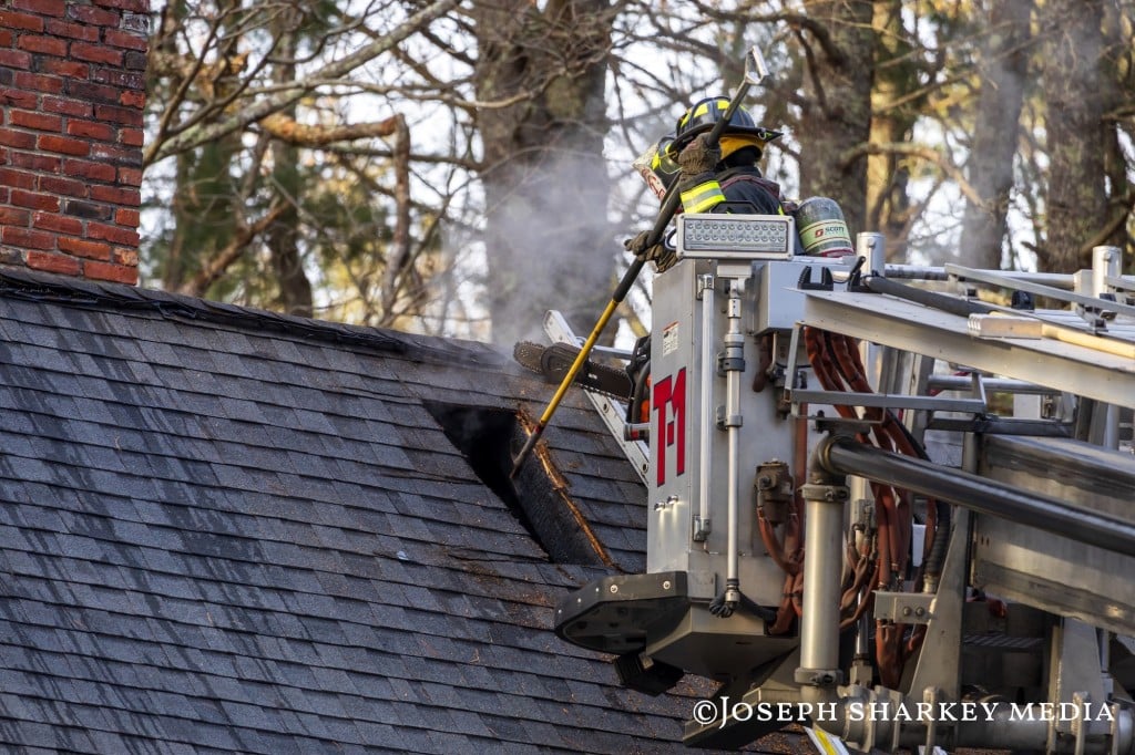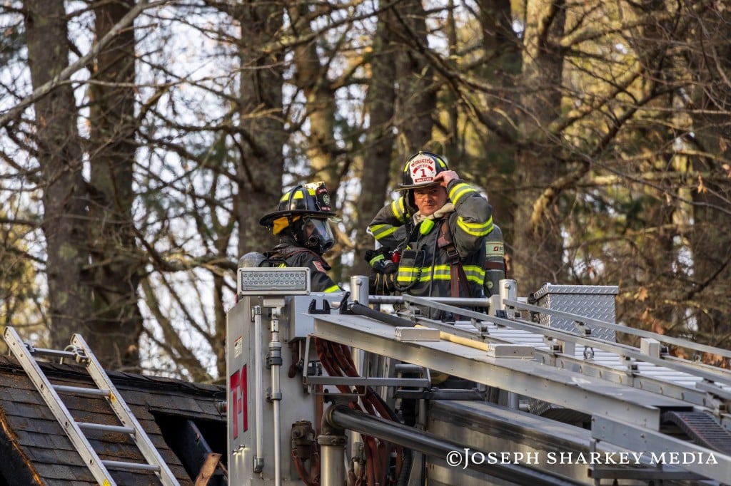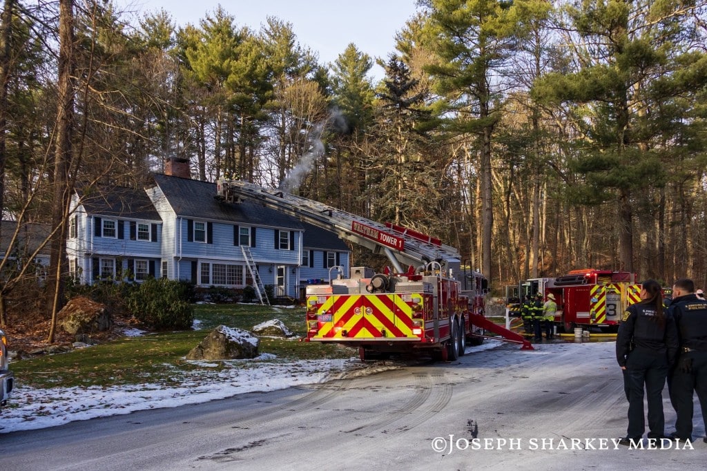 Waltham firefighters were called to assist at a three-alarm house fire Tuesday afternoon on Round Hill Road in Lincoln. Lincoln requested Waltham’s Tower 1 to open the roof and assist with ventilation.