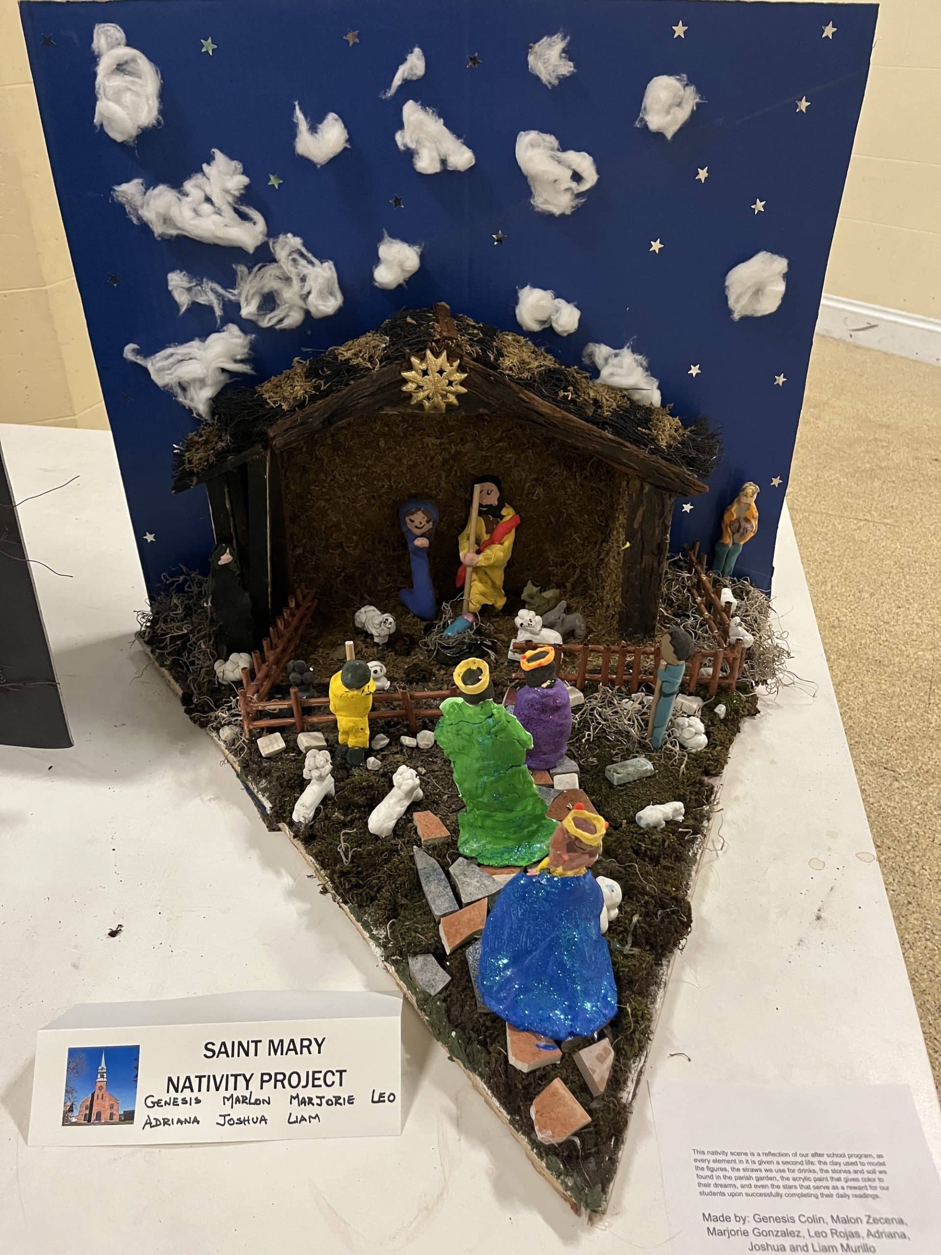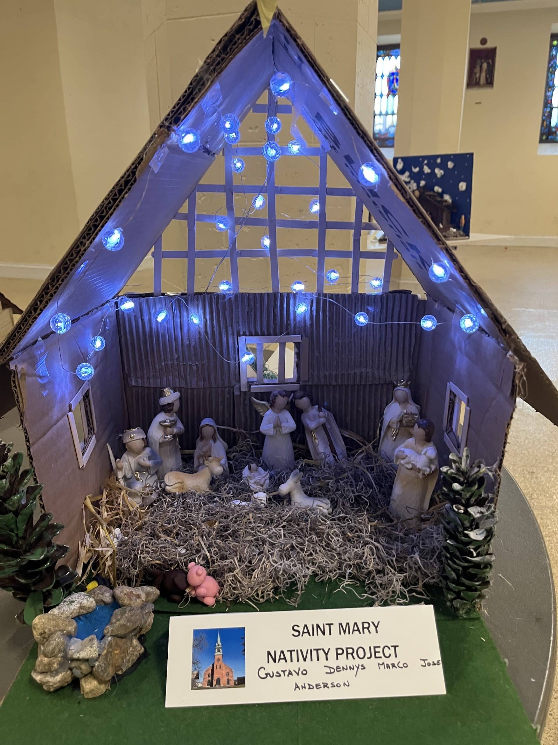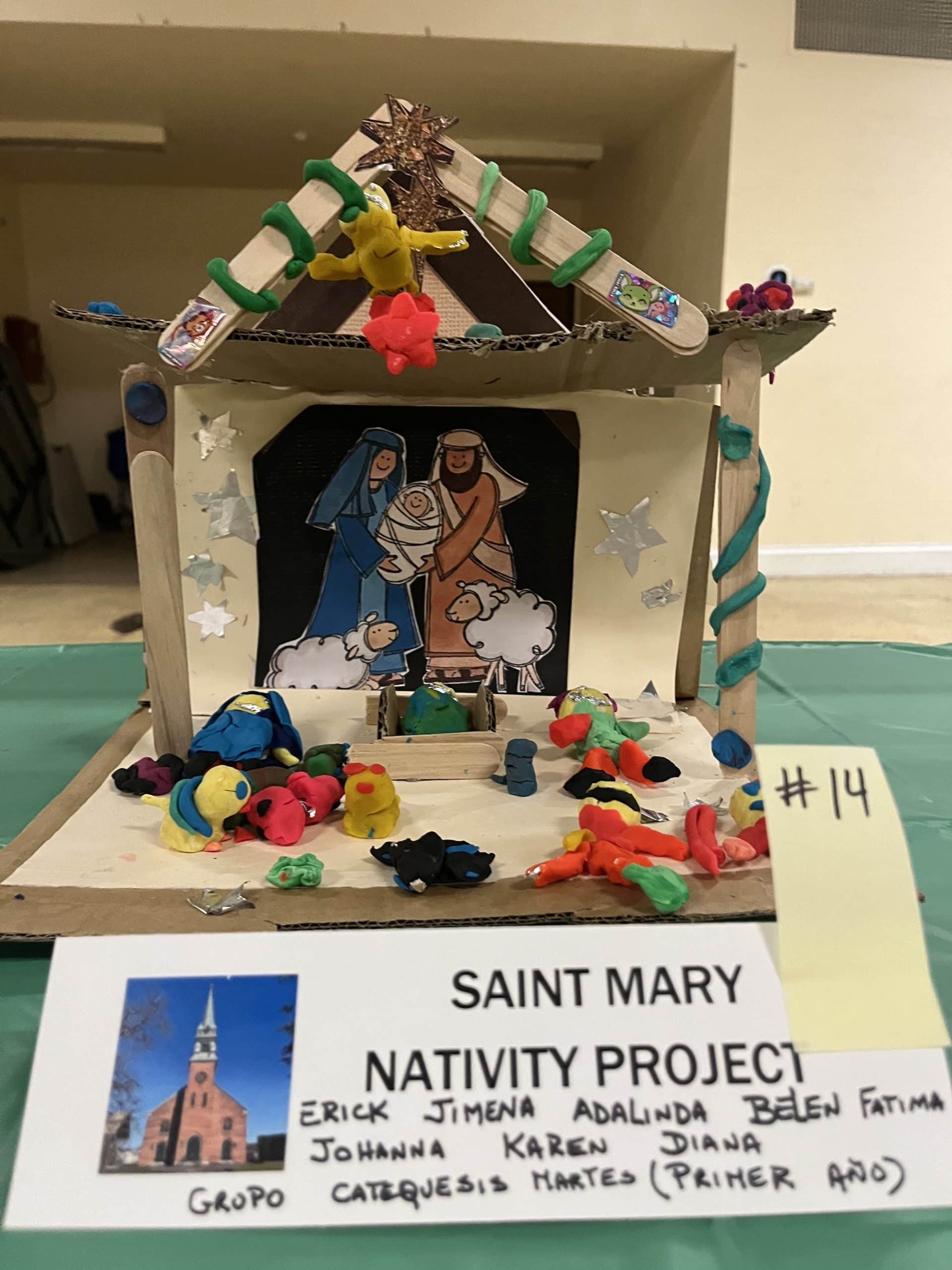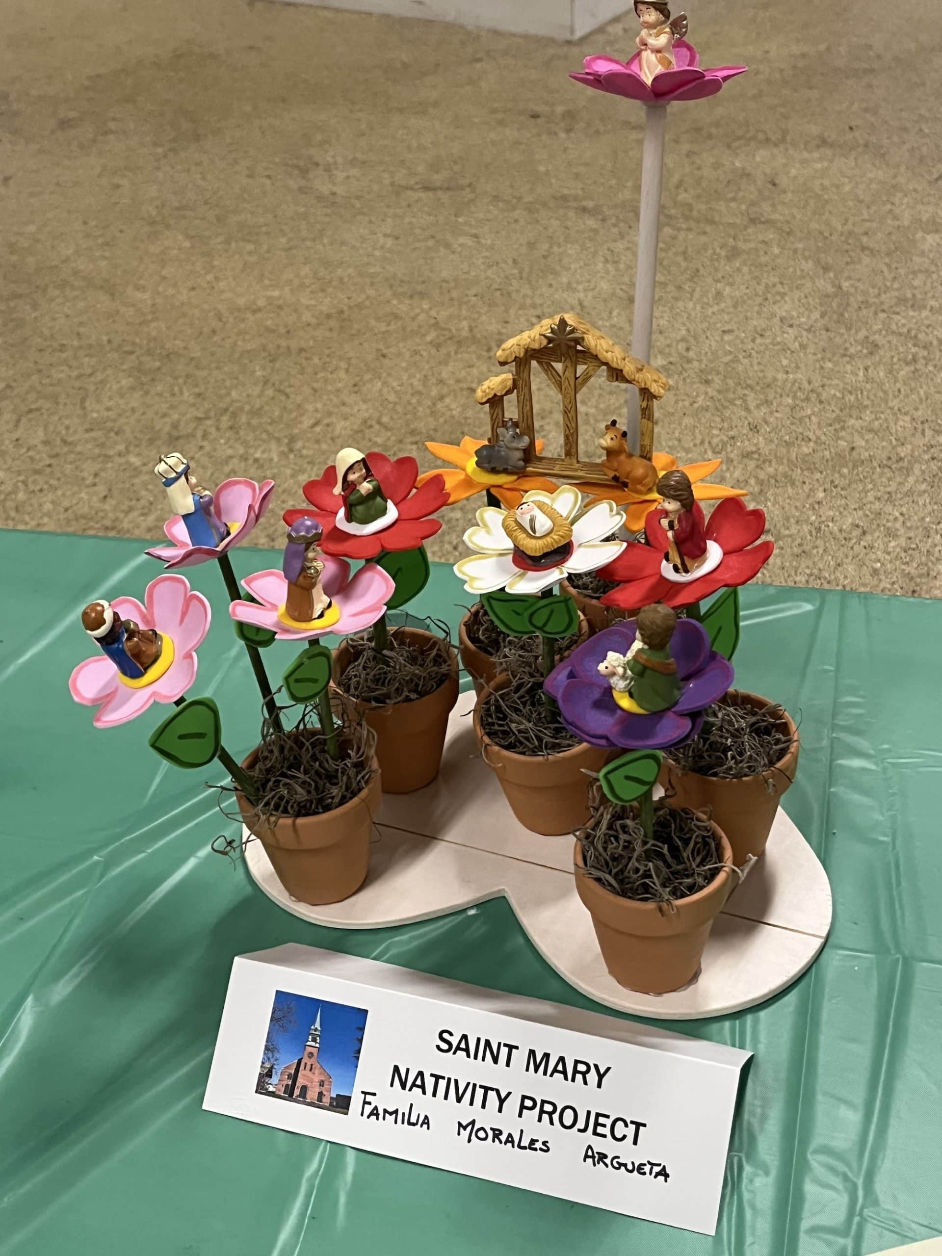 Amid two dozen nativity scenes crafted by the members of St. Mary Parish for its annual contest, one stood out for depicting the Holy Family and their worshippers as sea creatures, fashioned from neon-bright play clay. Many of the other nativity scenes also displayed the creative use of diverse materials, from beads and plastic aquarium plants to tiles and Jenga blocks.