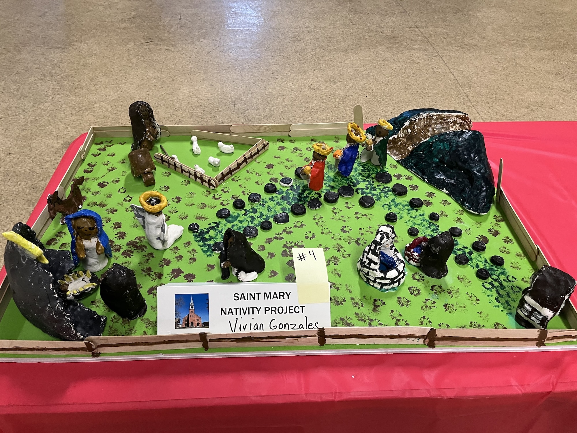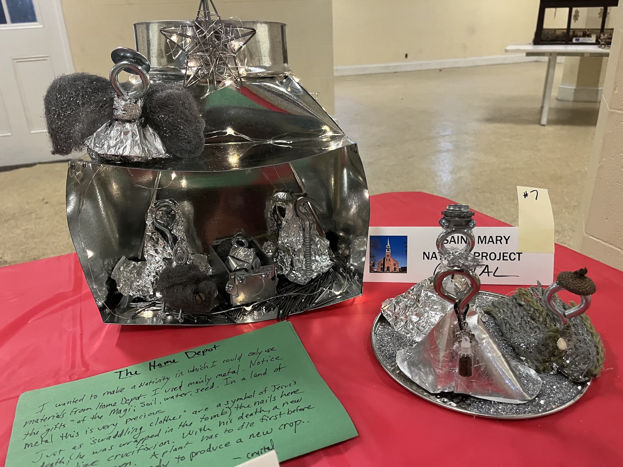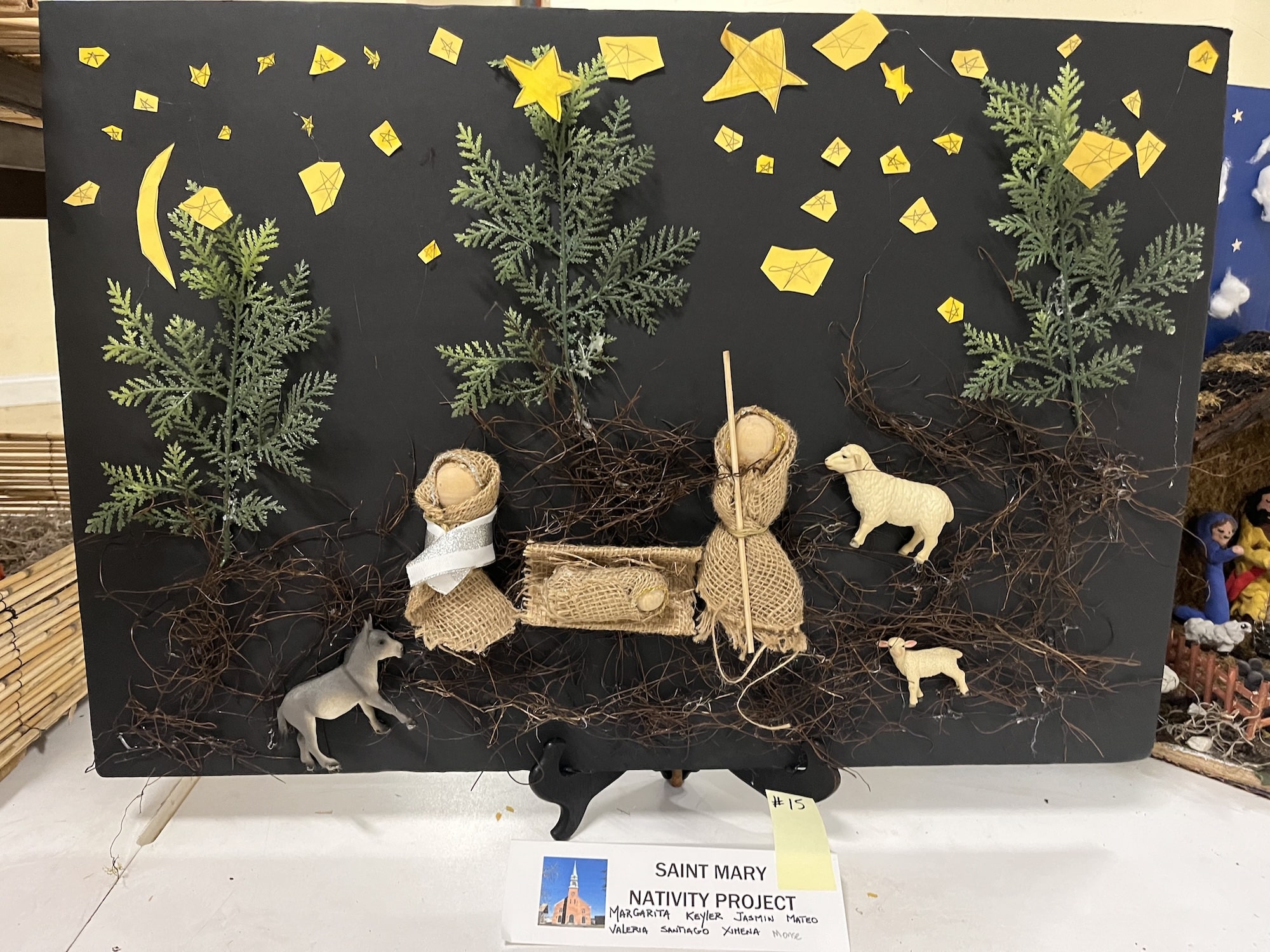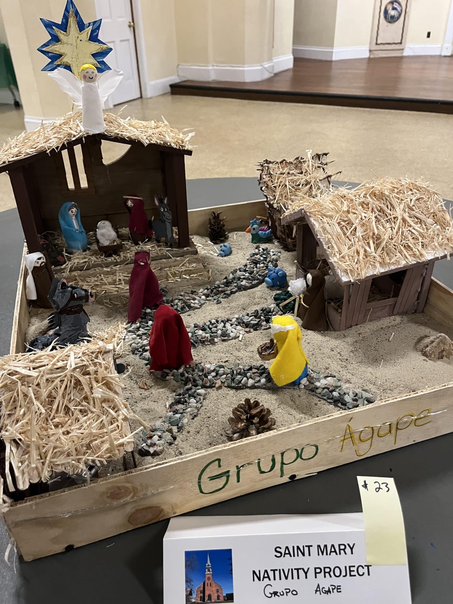 Amid two dozen nativity scenes crafted by the members of St. Mary Parish for its annual contest, one stood out for depicting the Holy Family and their worshippers as sea creatures, fashioned from neon-bright play clay. Many of the other nativity scenes also displayed the creative use of diverse materials, from beads and plastic aquarium plants to tiles and Jenga blocks.
