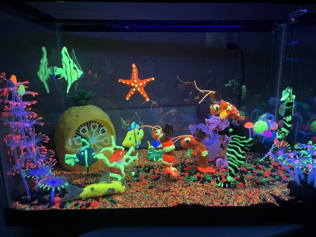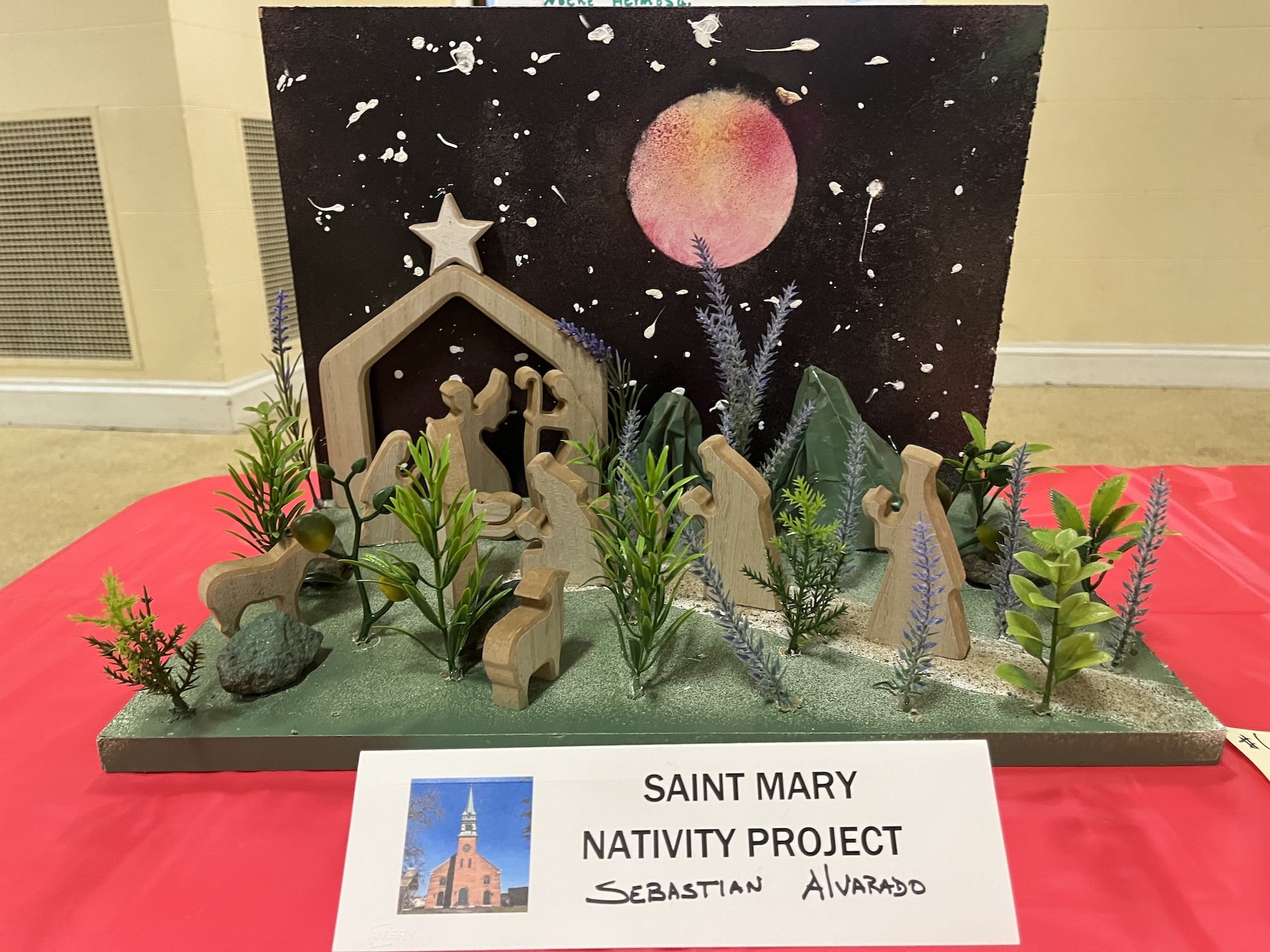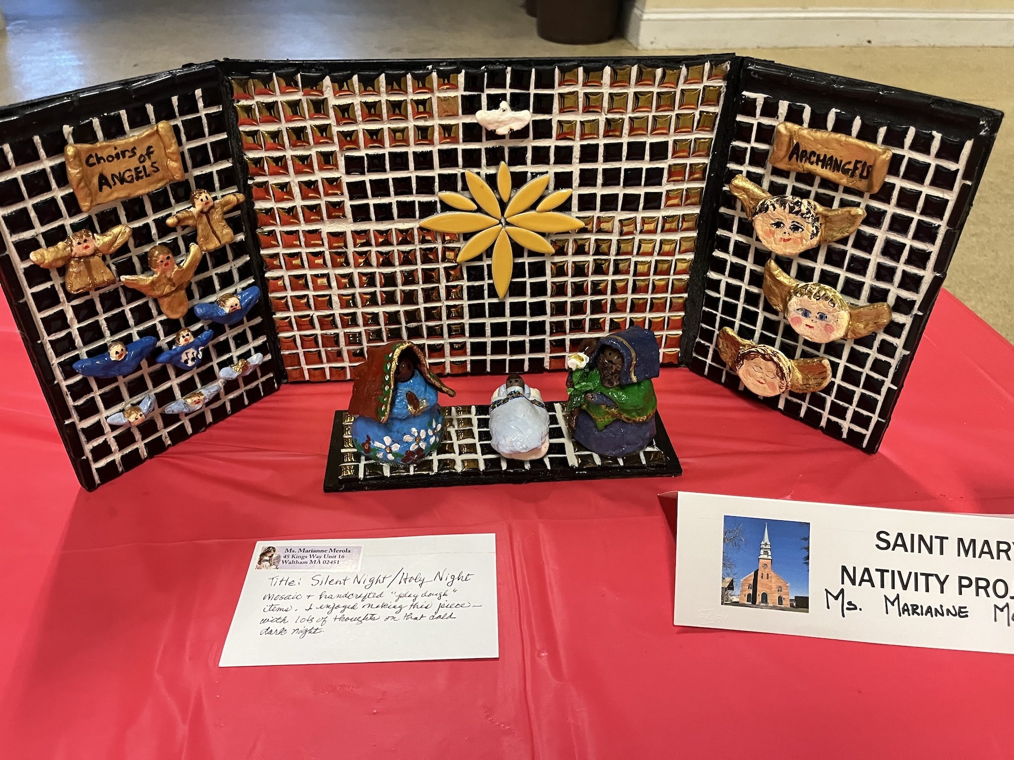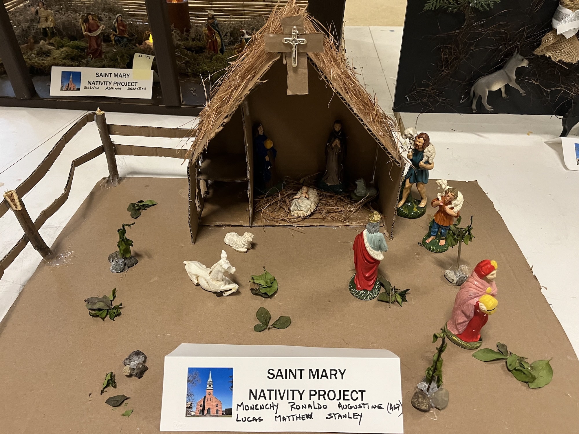 Amid two dozen nativity scenes crafted by the members of St. Mary Parish for its annual contest, one stood out for depicting the Holy Family and their worshippers as sea creatures, fashioned from neon-bright play clay. Many of the other nativity scenes also displayed the creative use of diverse materials, from beads and plastic aquarium plants to tiles and Jenga blocks.