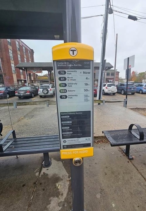 Carter Street is one of the busiest multi-modal transformation hubs in the MBTA system, providing Commuter Rail Service as well as numerous bus routes (Routes 61, 70, 553, 554, 556, and 558). The MBTA expects the new signs will improve the rider experience for all who use buses to commute in and out of Waltham.