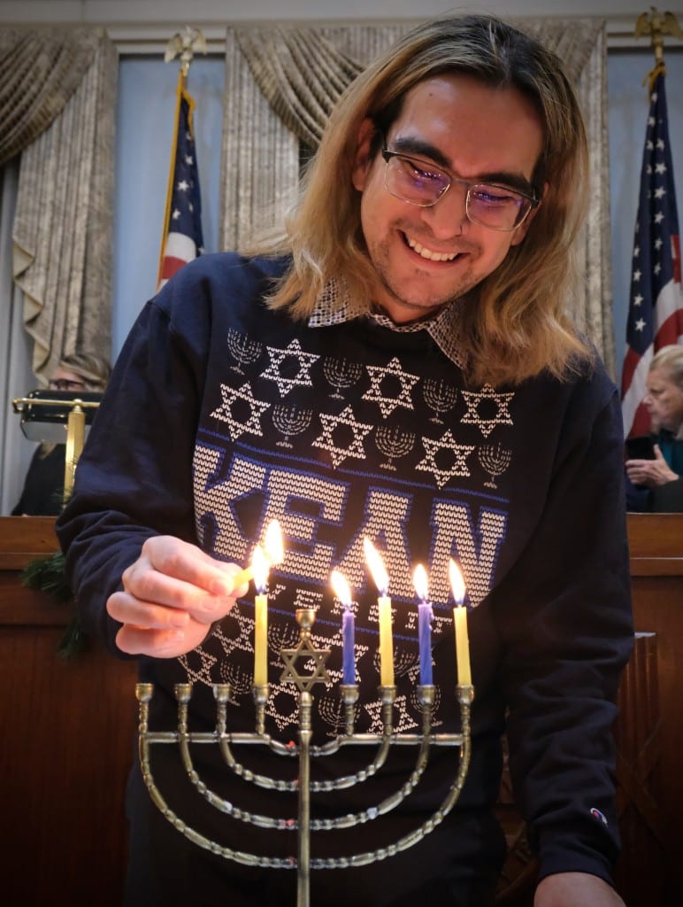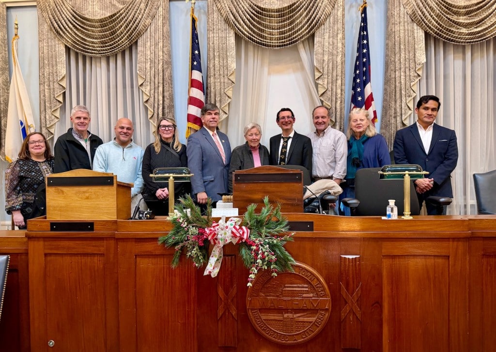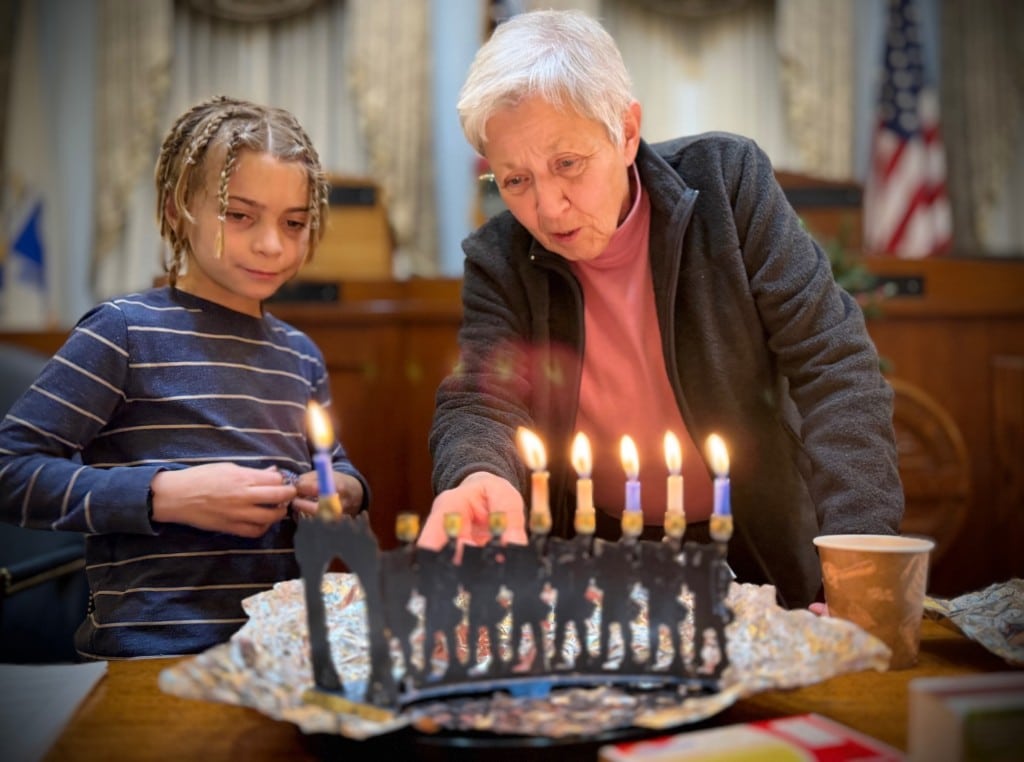 About 50 Waltham residents gathered Dec. 18 in the City Council chambers for the city’s annual menorah lighting. Mayor Jeannette A. McCarthy welcomed attendees and turned the proceedings over to Rabbi Benjamin Chaidell of Temple Beth Israel.