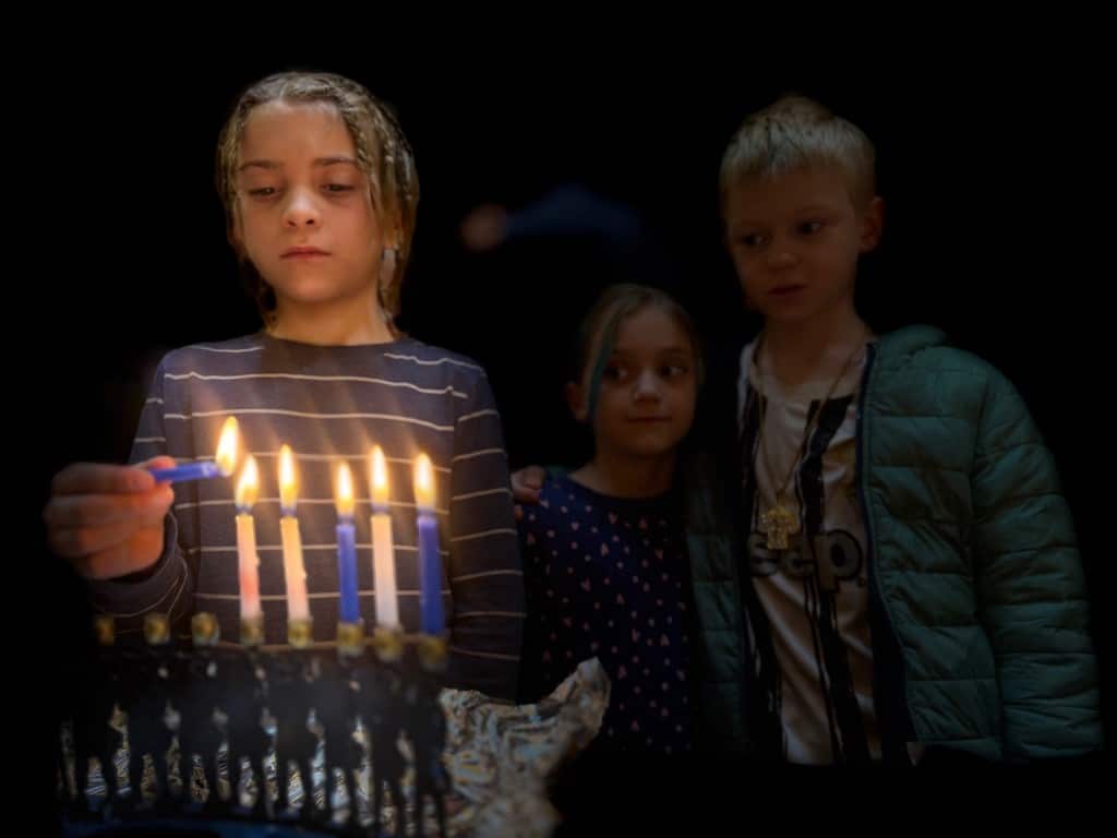 “We’re thankful Waltham is a welcoming community,” Chaidell said. He helped the children light candles on three menorahs and led the group in singing Hanukkah songs. Children also played with dreidels, recalling a time when Jews used the game to disguise secret study sessions of religious texts, which had been outlawed by the Syrian Greek empire.