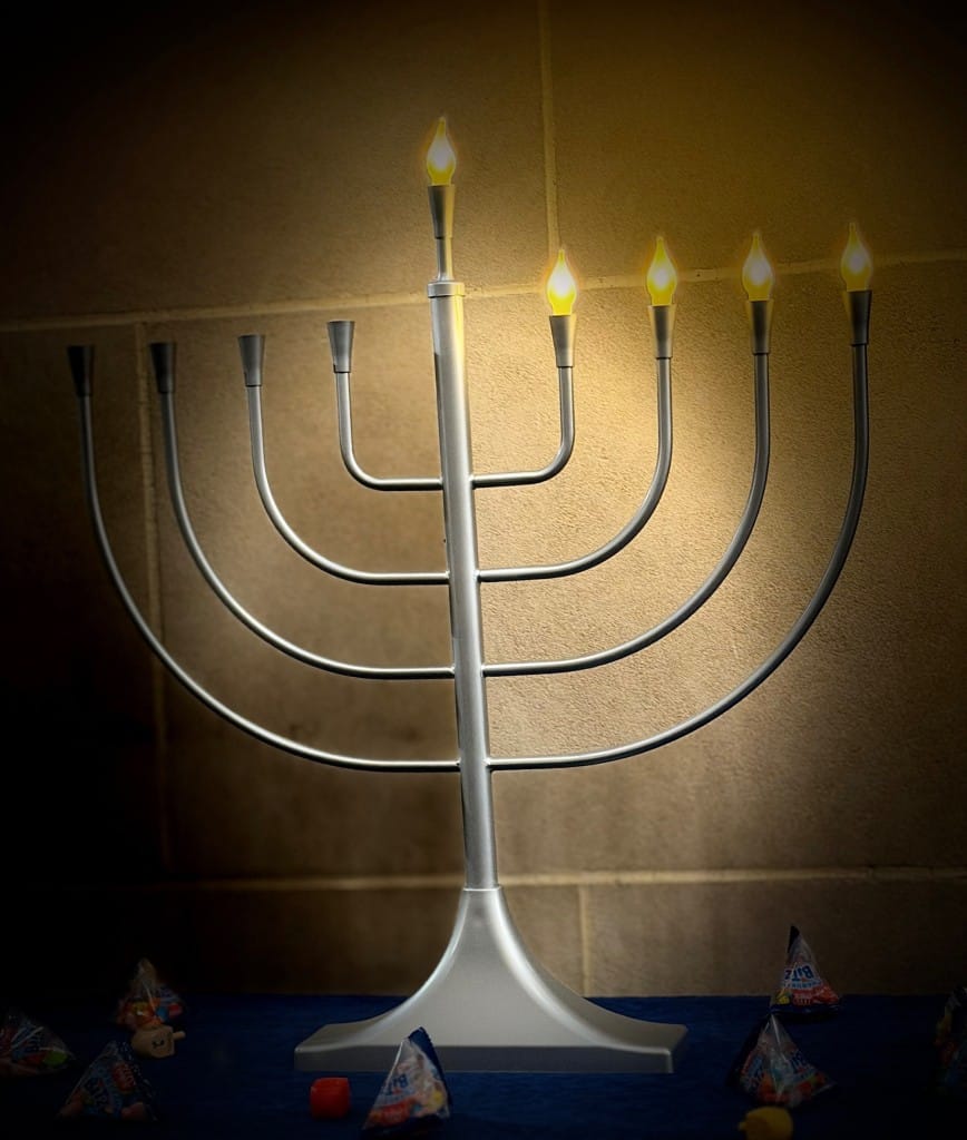 He led children in a question-and-answer session about Hanukkah, which commemorates the second-century B.C.E. victory of the Maccabees over a Syrian Greek ruler who sought to ban Jewish religious practice. After their victory the Jews rededicated the Holy Temple in Jerusalem but found only enough purified oil to keep the menorah burning for one night. The oil miraculously lasted eight days, long enough for more oil to be prepared.