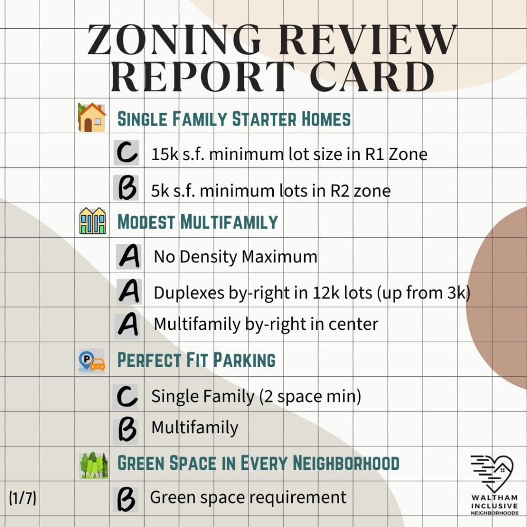 Housing group Waltham Inclusive Neighborhoods, which has been vocal in its advocacy throughout Waltham’s ongoing zoning code reform, has published its evaluation of the first proposed steps of the rezoning process.