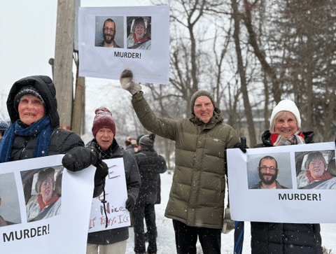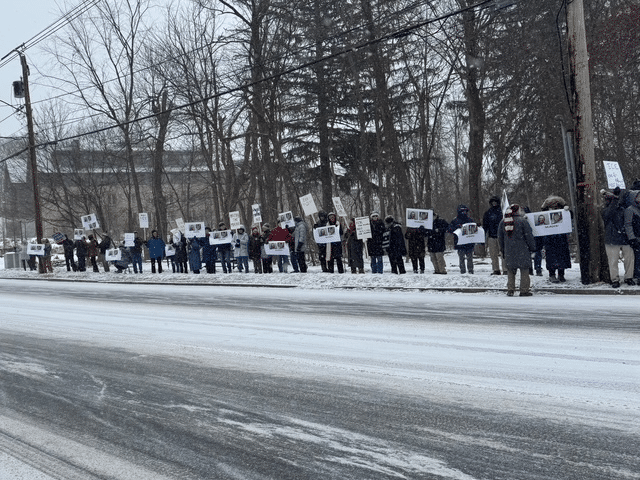 Around 60 local residents, many of them seniors, stood out on Main Street on Sunday morning. Undeterred by 8-degree temperatures and snow flurries, they held aloft signs decrying the fatal shootings by agents of U.S. Immigration and Customs Enforcement of two Minneapolis citizens, Renée Good on Jan. 7 and Alex Pretti on Jan. 24.
